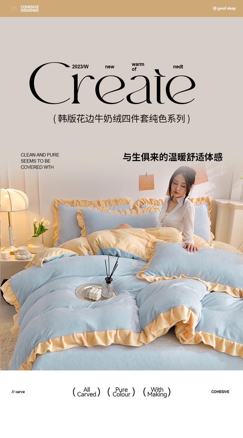 (总)妮恒美家纺 2025新款高克重直播纯色牛奶绒宽边工艺款四件套,宾利蓝+浅灰,焦糖+浅灰,焦糖+杏色,酒红+深灰,爵士蓝+深灰,米驼+深驼,奶白+水绿,牛油果绿+浅灰,浅豆沙+浅灰,石英灰+浅灰,水绿+橄榄绿,香芋紫+杏色,杏色+米驼,故宫蓝,靓丽黄+浅灰,浅紫+灰紫,深蓝+梦幻绿,雾蓝+宾利蓝,陨石拿铁