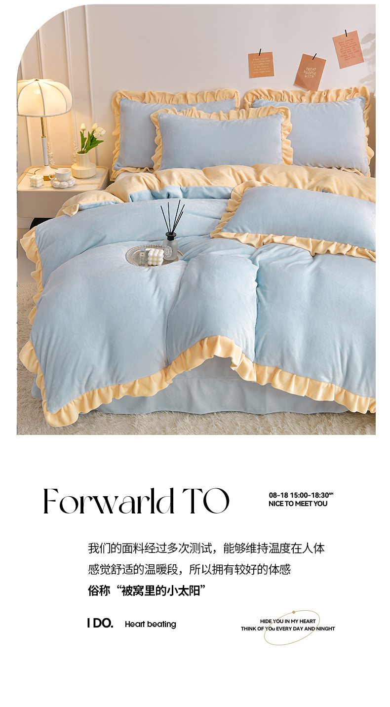 妮恒美 2024新款韩版牛奶绒四件套 天海蓝+奶黄