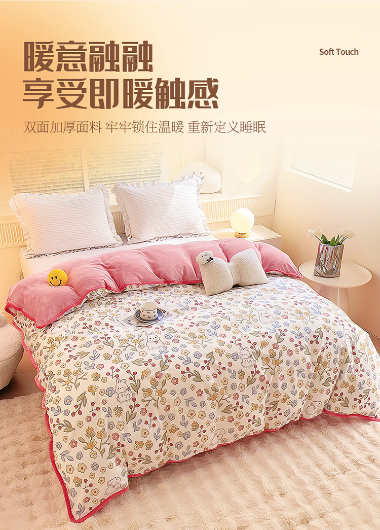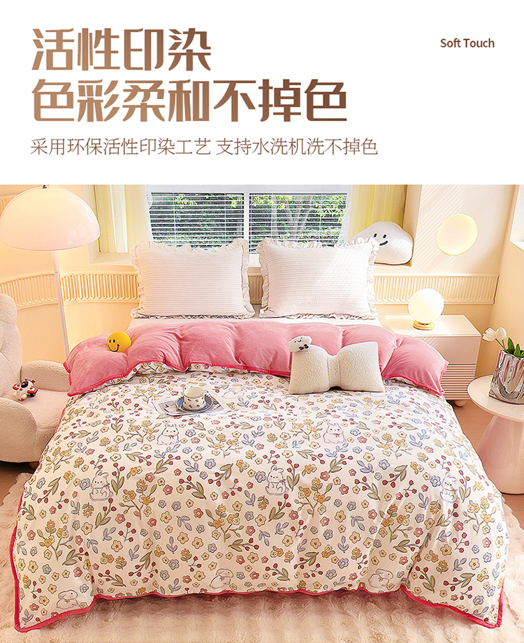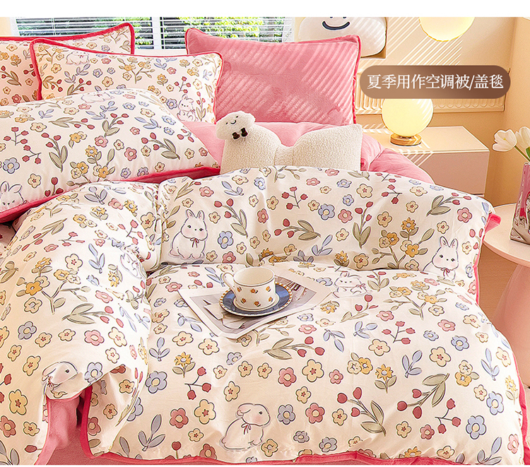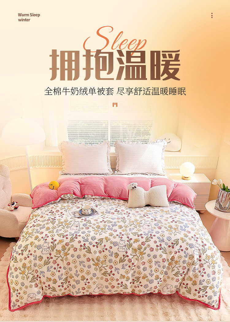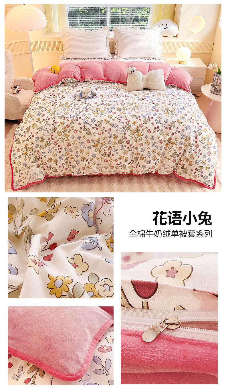 2024新款全棉加牛奶绒四件套单被套系列-单被套 花语小兔
