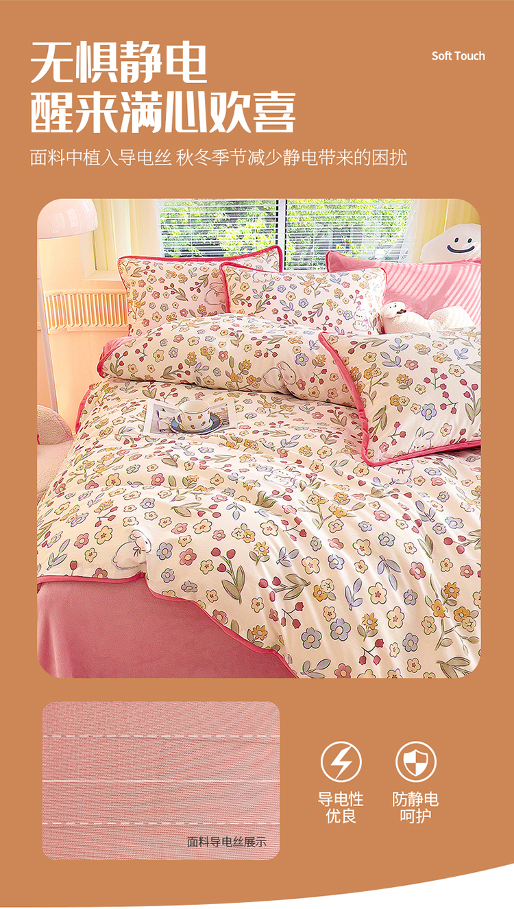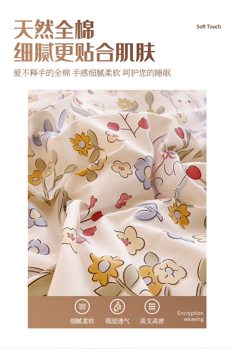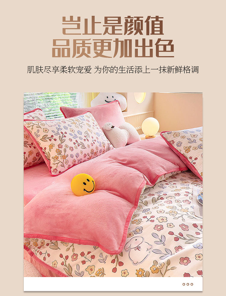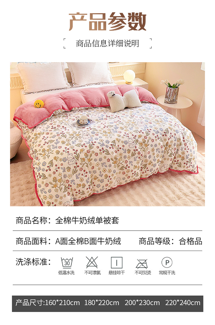商品名称:2024新款全棉加牛奶绒四件套单被套系列-单被套 花语小兔