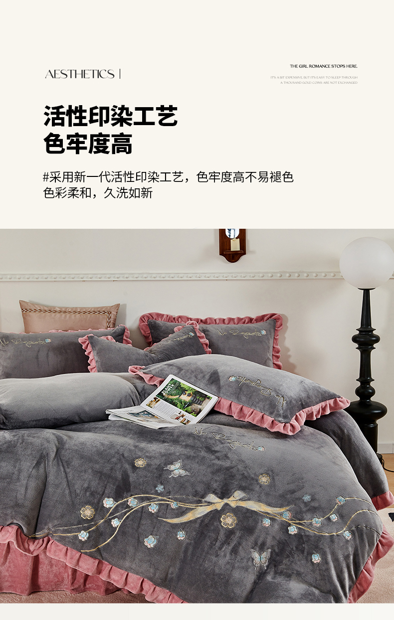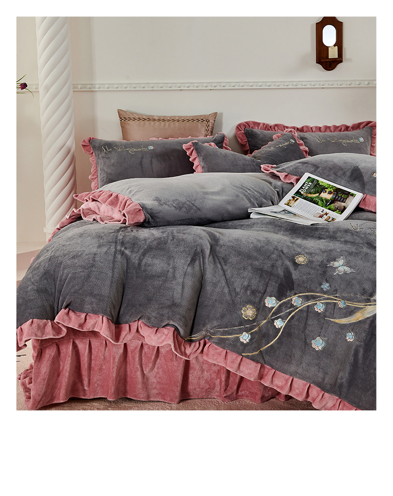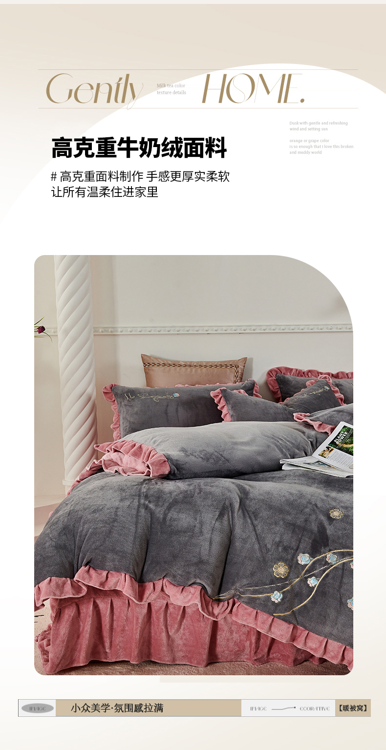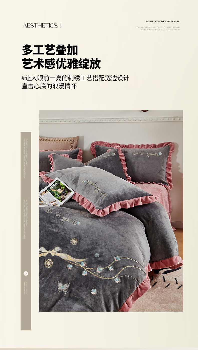 慕克斯 2025直播新款高克重8.5斤纯色刺绣牛奶绒四件套 朝花夕拾-寐粉,朝花夕拾-寐粉