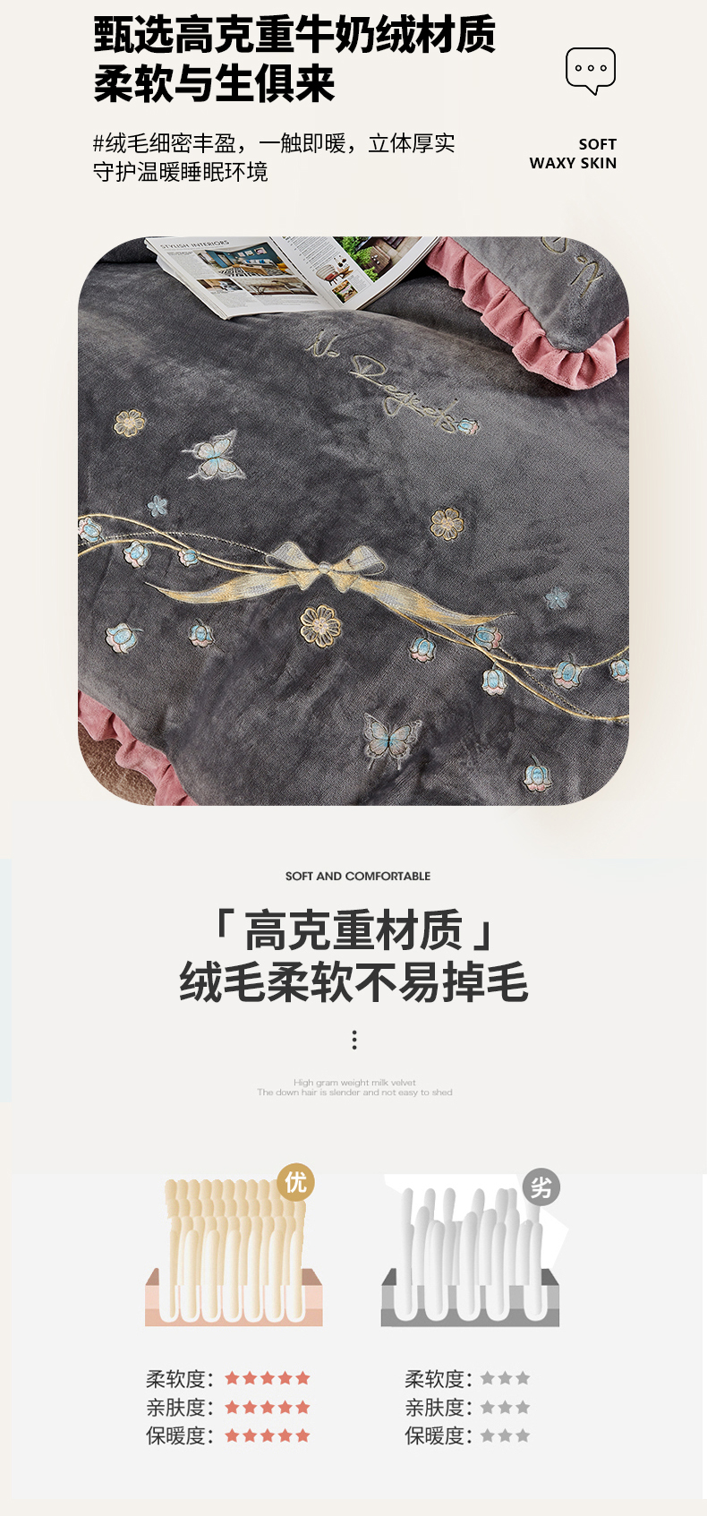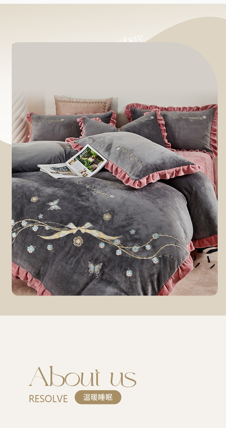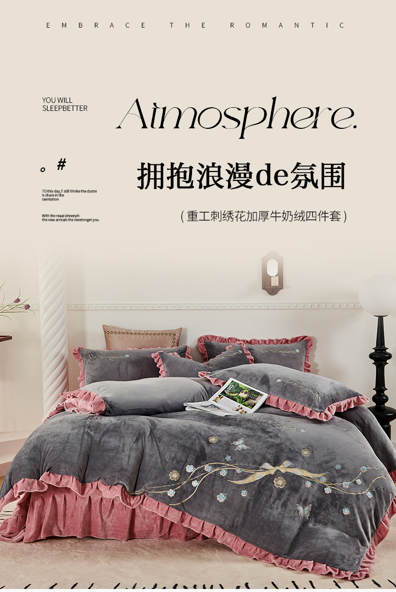 慕克斯 2025直播新款高克重8.5斤纯色刺绣牛奶绒四件套 朝花夕拾-寐粉,朝花夕拾-寐粉