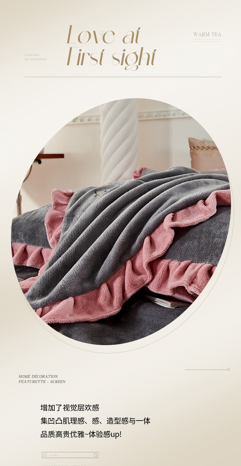 (总)慕克斯家纺 2025新款9斤韩版兔毛拼接牛奶绒法式雪纺花边四件套 法芙娜系列,法芙娜-粉豆沙,法芙娜-卡其,法芙娜-梦幻紫,法芙娜-木槿粉,法芙娜-绅士灰,法芙娜-天空蓝