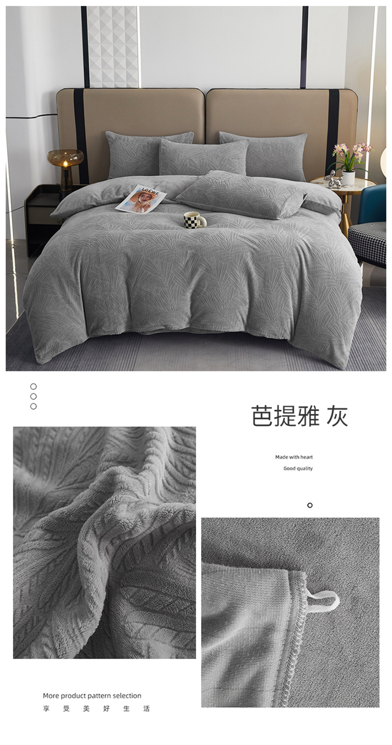 商品名称:青螺家纺 2024新款纯色雕花牛奶绒四件套婴儿级烂花立体牛奶绒四件套 芭提雅-灰