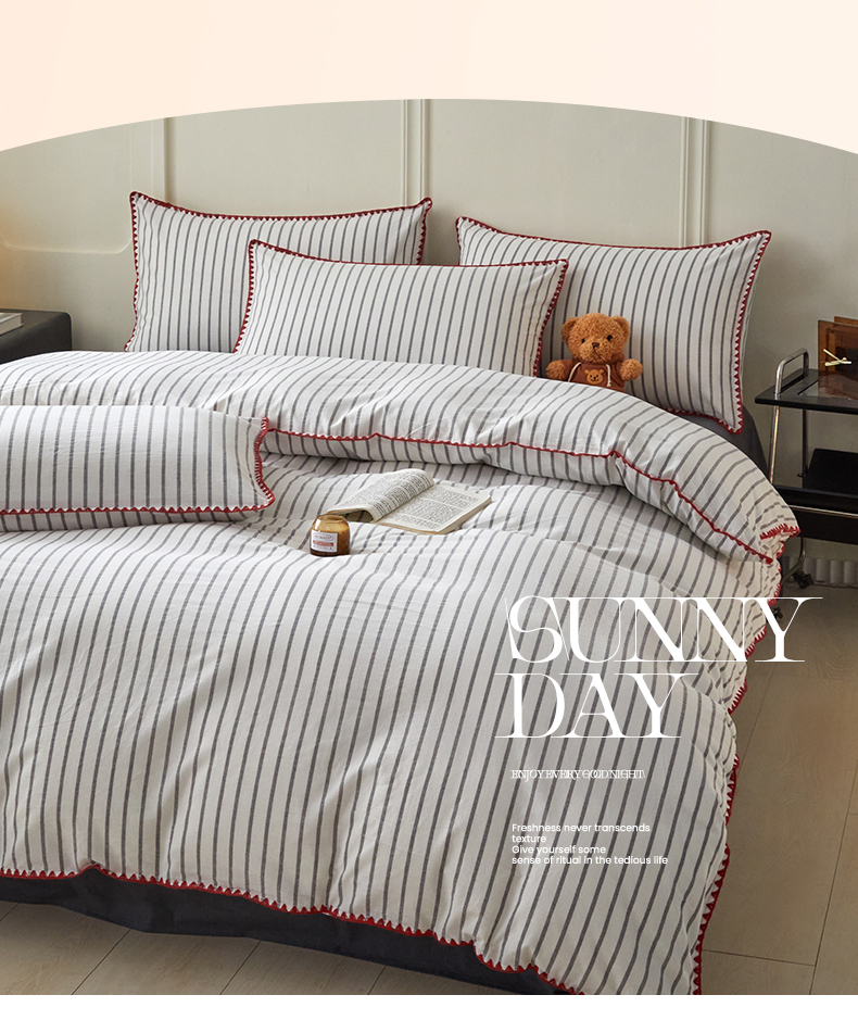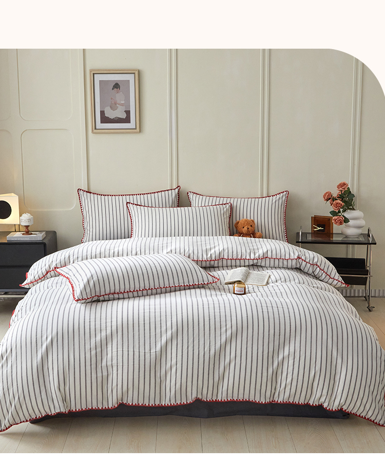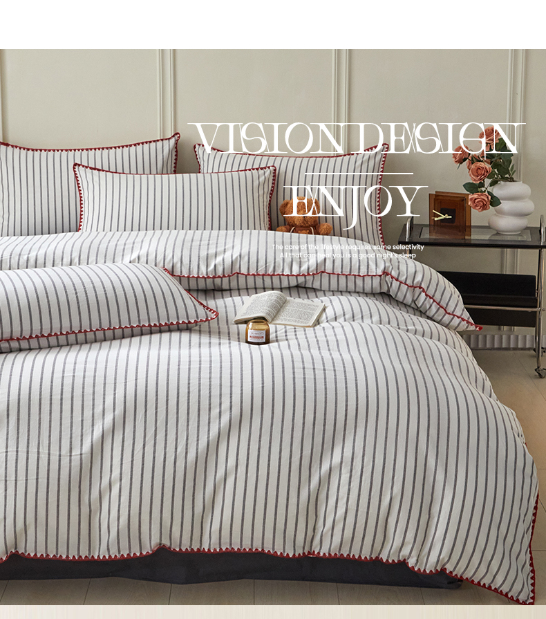 吉象家纺 2024新款A类全棉色织水洗棉贝壳边三角针四件套 时光浅灰