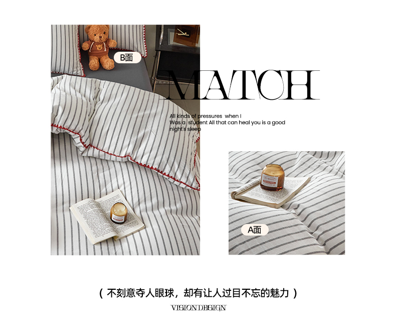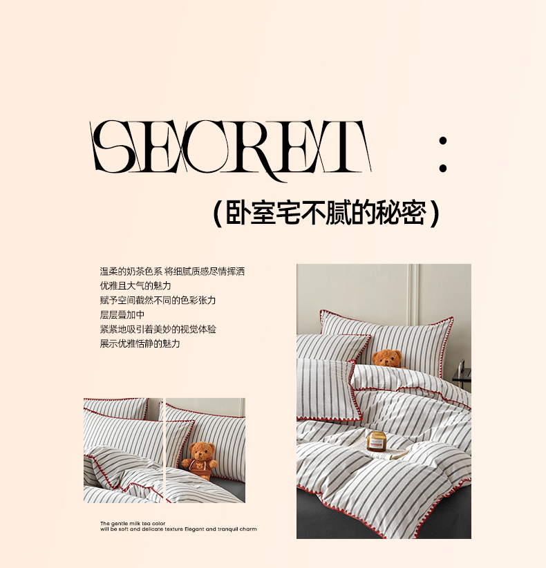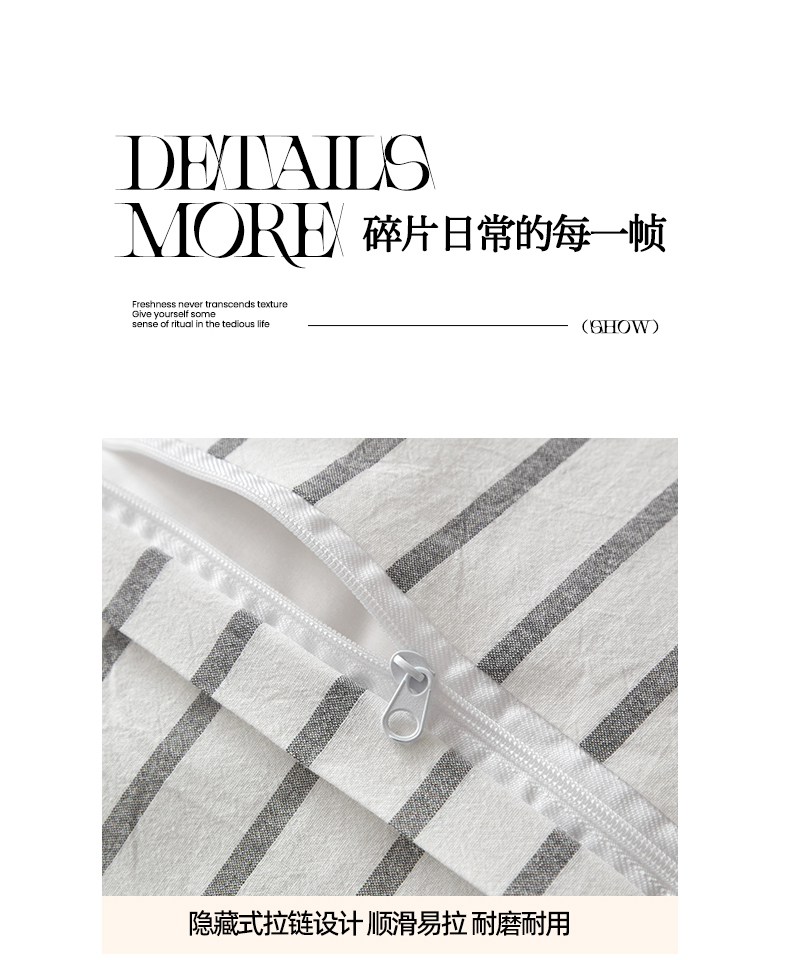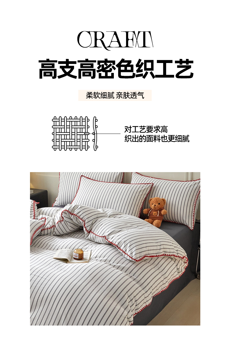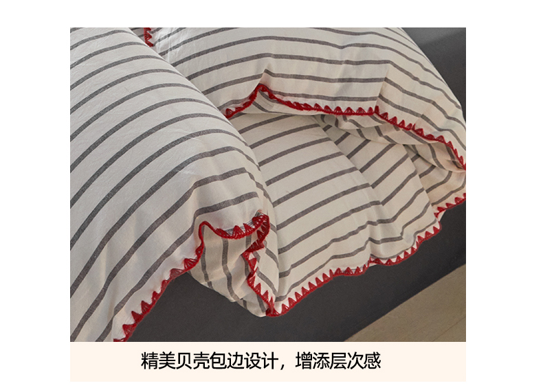 商品名称:吉象家纺 2024新款A类全棉色织水洗棉贝壳边三角针四件套 时光浅灰