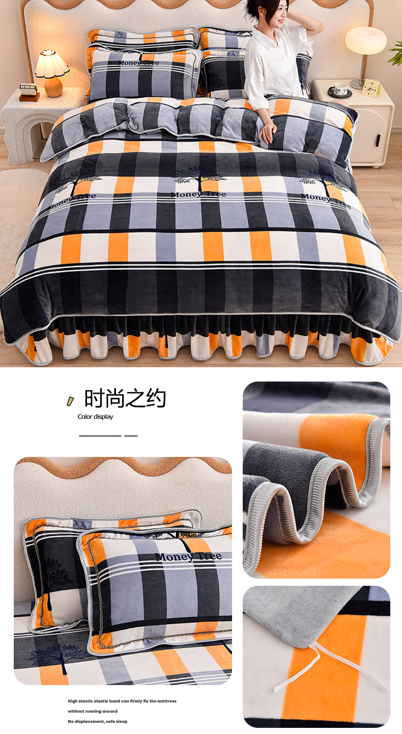 羽梦2025新款8.5斤牛奶法莱绒金貂法兰绒四件套直播爆款 时尚之约