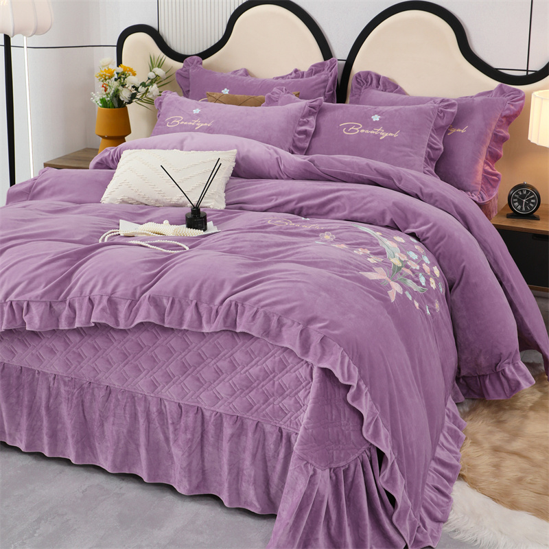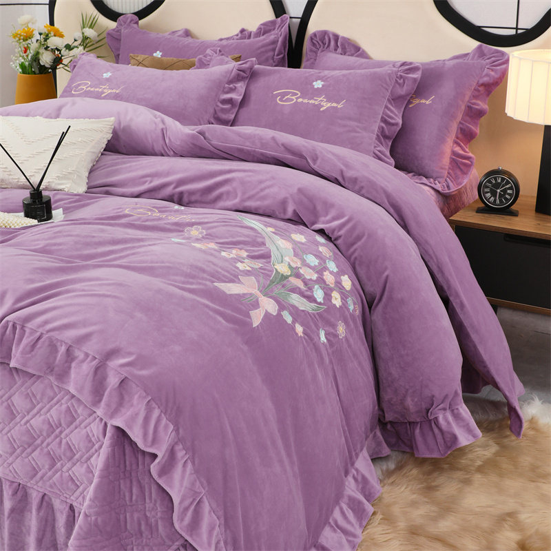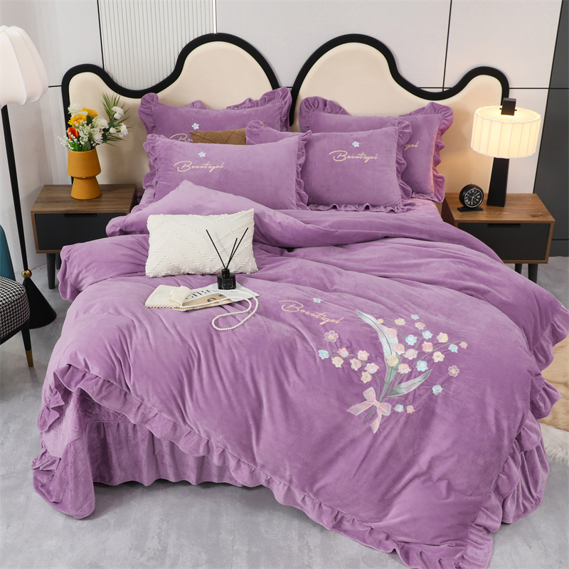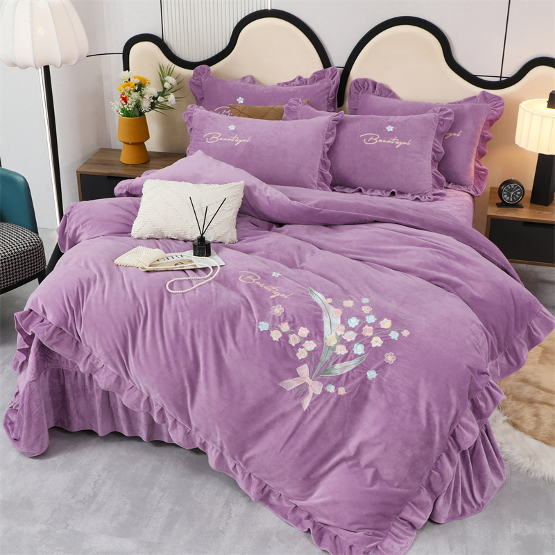 卡迪亚家纺 2024新款宝宝绒绣花床盖款四件套-铃兰花 优雅紫