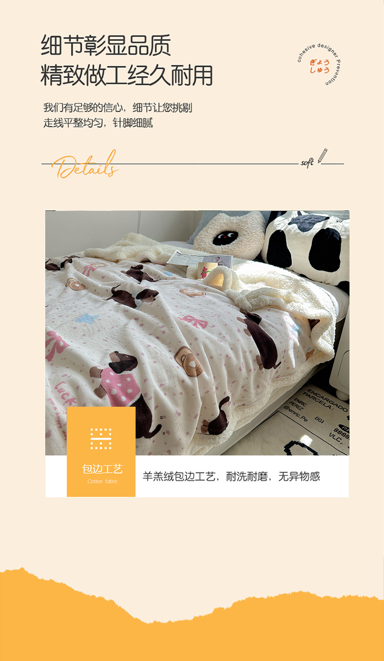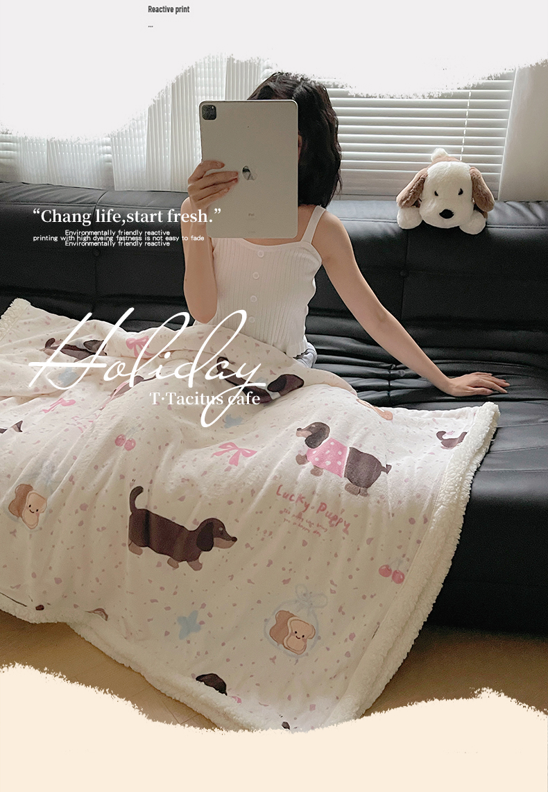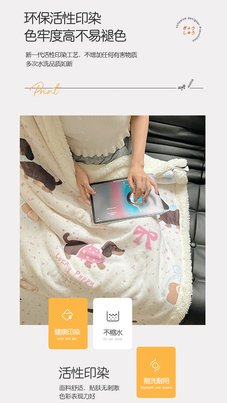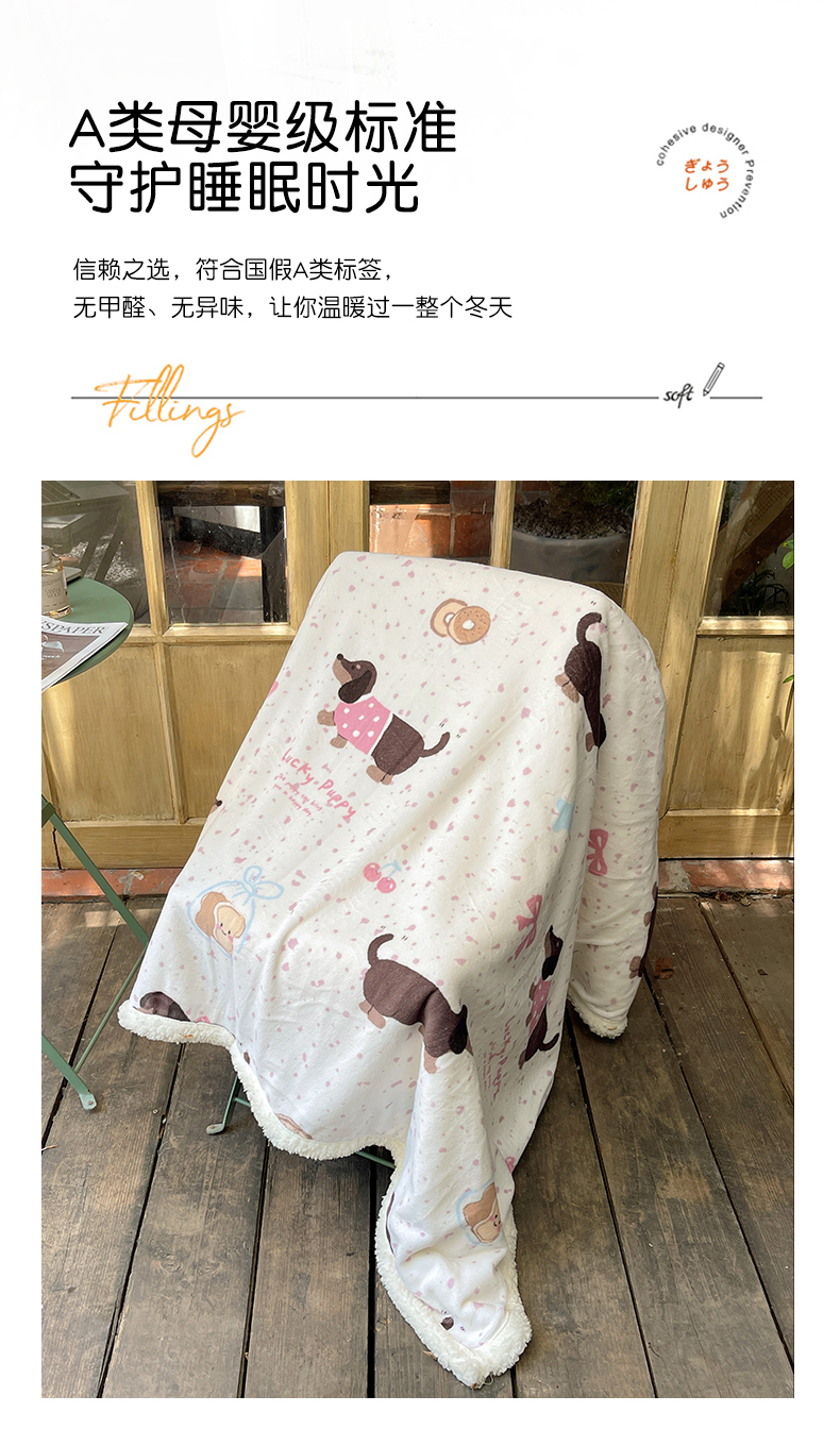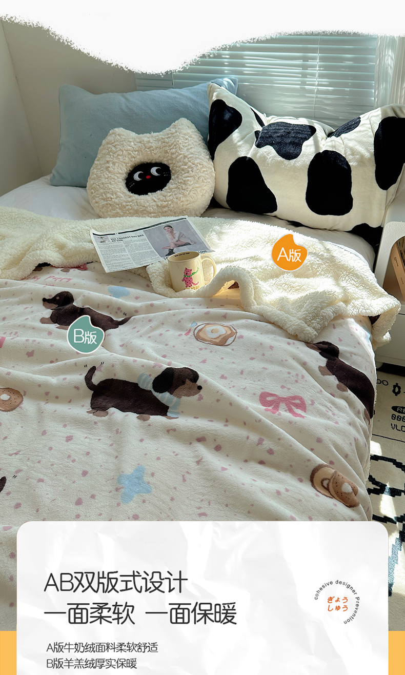 萝莉家纺 2024秋冬新款多功能加厚牛奶绒羊羔绒多功能毛毯 调皮狗