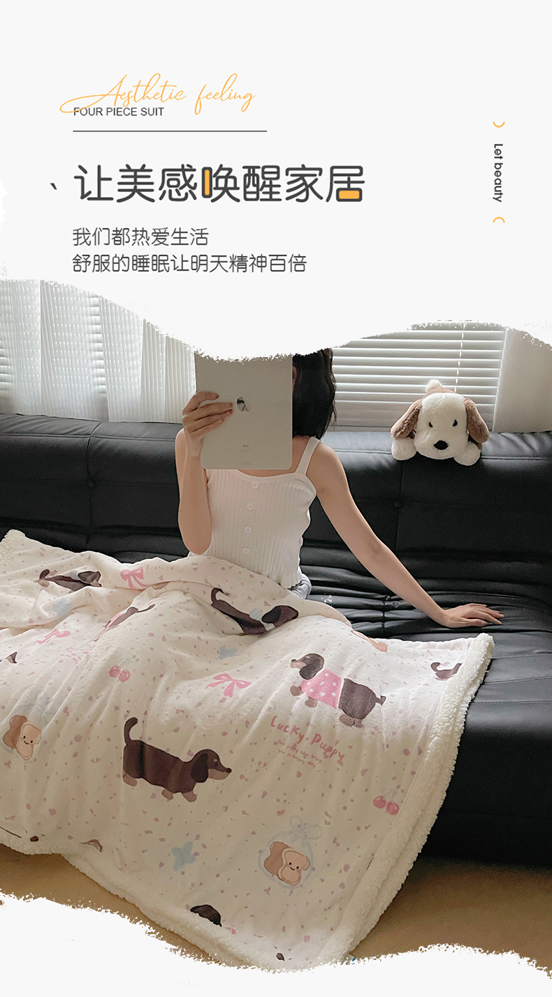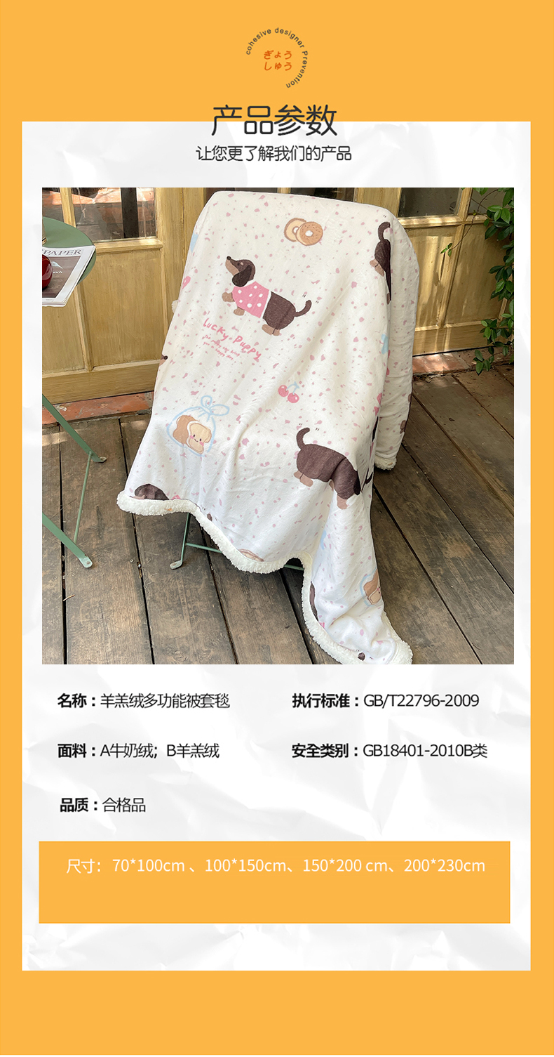 商品名称:萝莉家纺 2024秋冬新款多功能加厚牛奶绒羊羔绒多功能毛毯 调皮狗