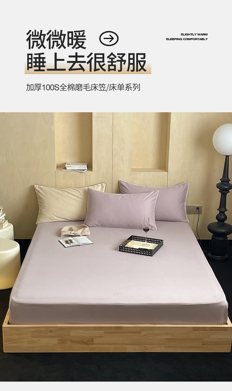 商品名称:2024新款加厚50S全棉磨毛单品床笠床单 灰紫
