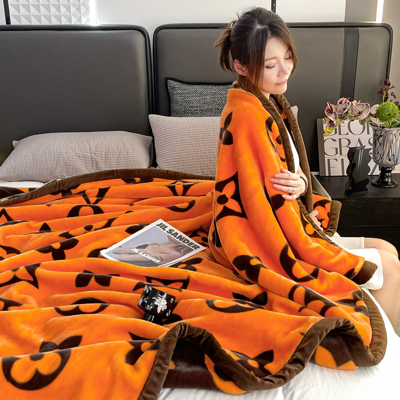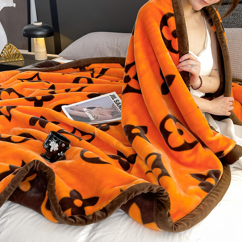 法莱妮毛毯 2025新款A类双层加厚拉舍尔天丝超柔云毯 时尚之都-橙