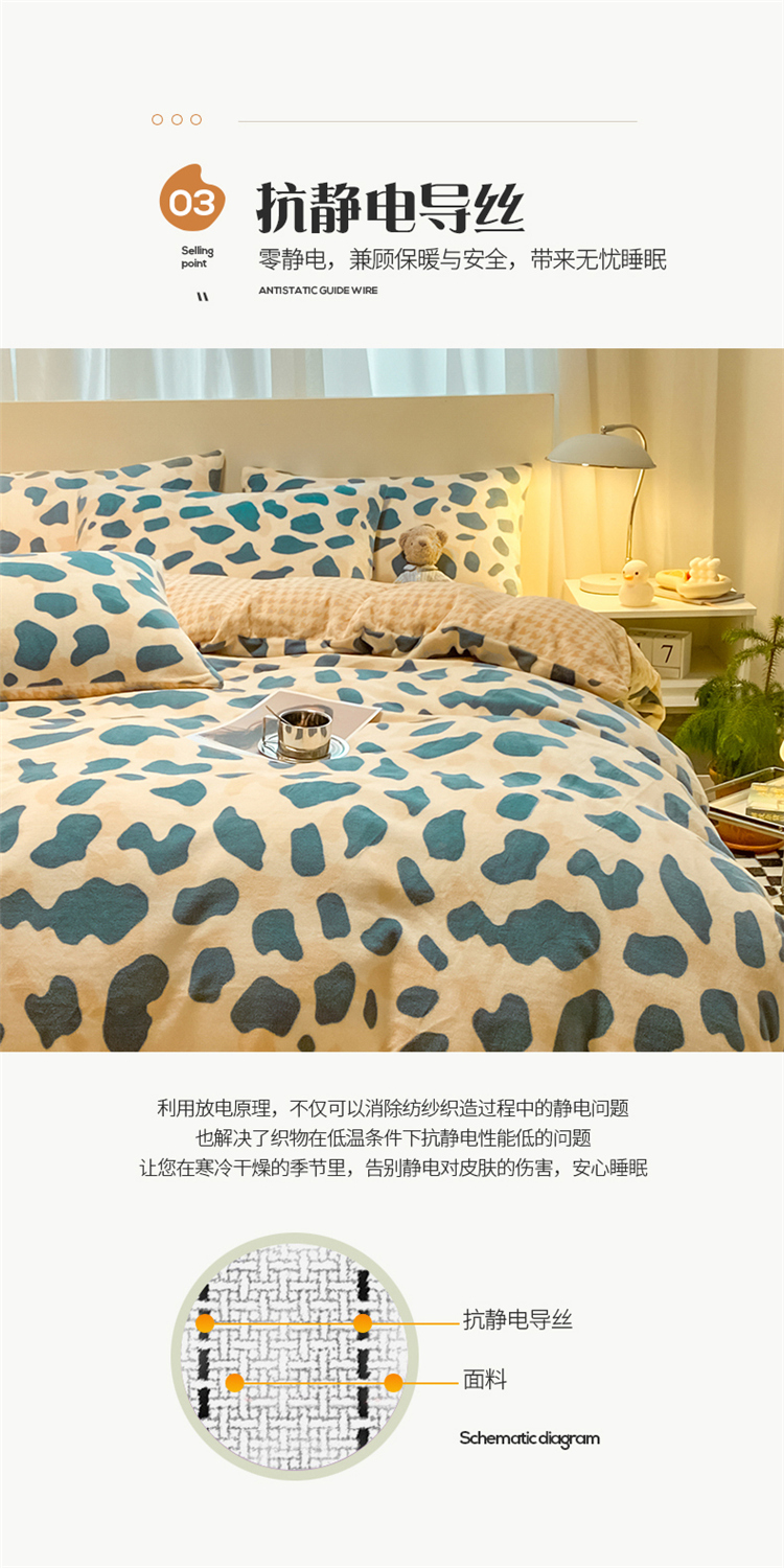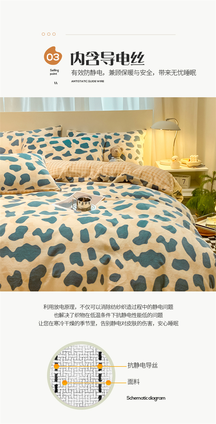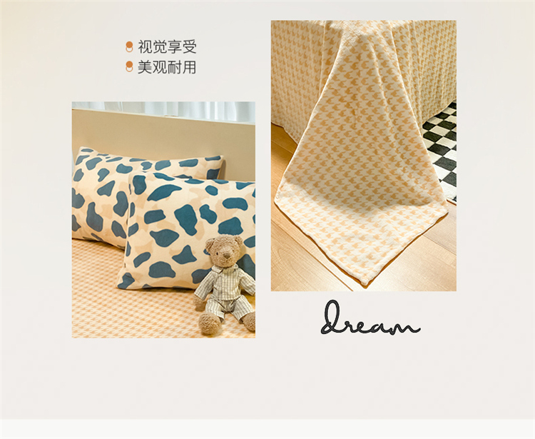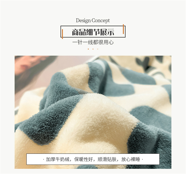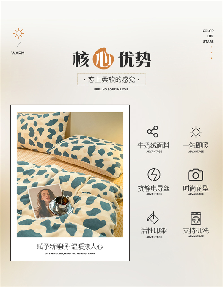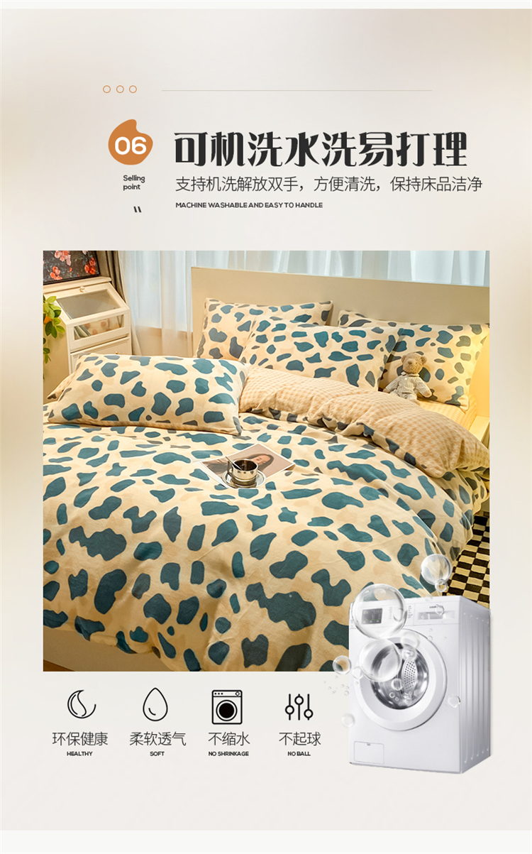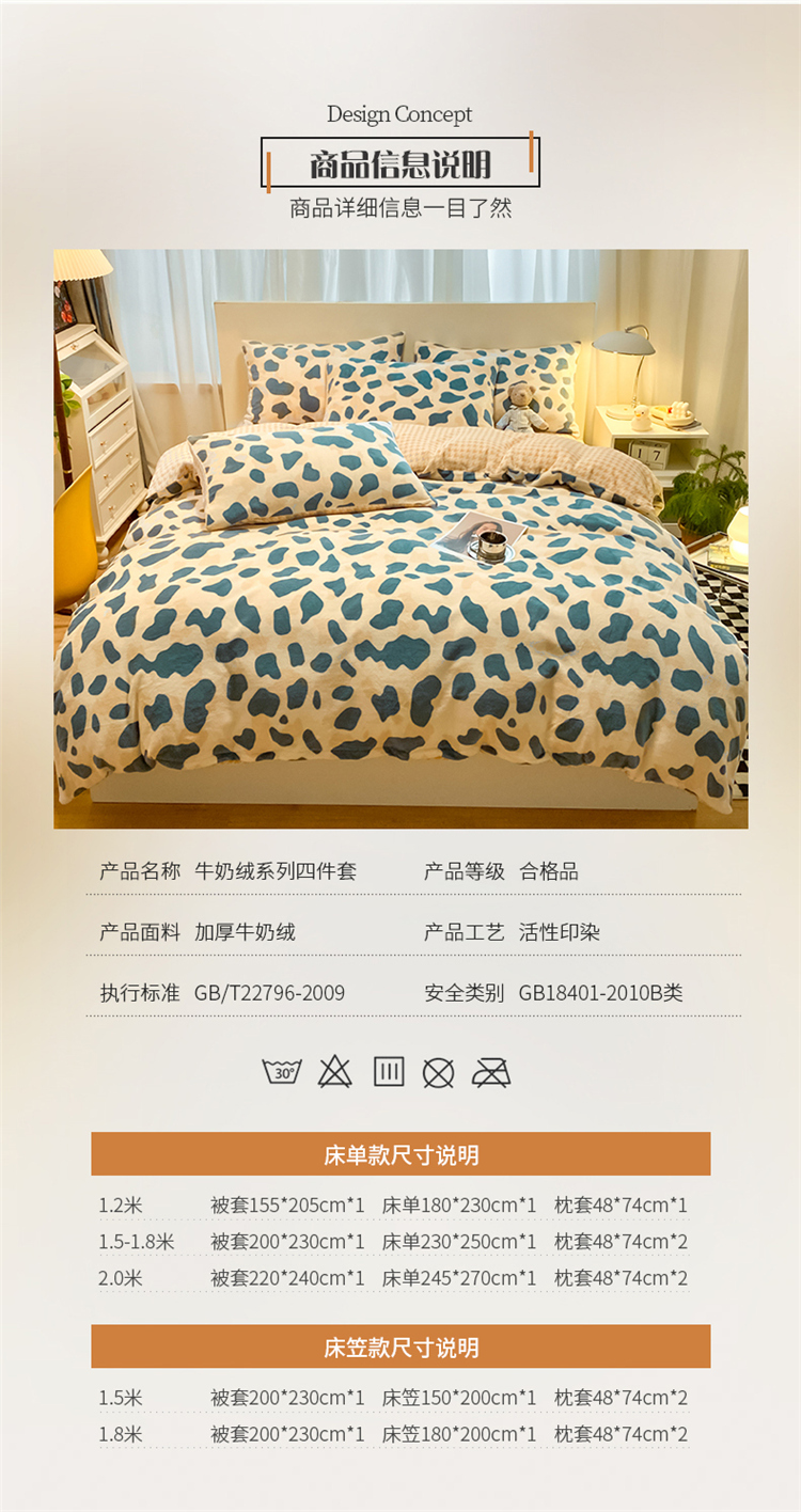 商品名称:2024新款时尚高级经典轻奢北欧简约加厚200克牛奶绒四件套 绒-豹点点绿咖