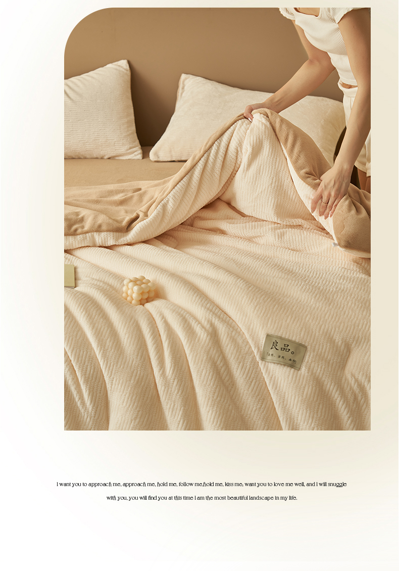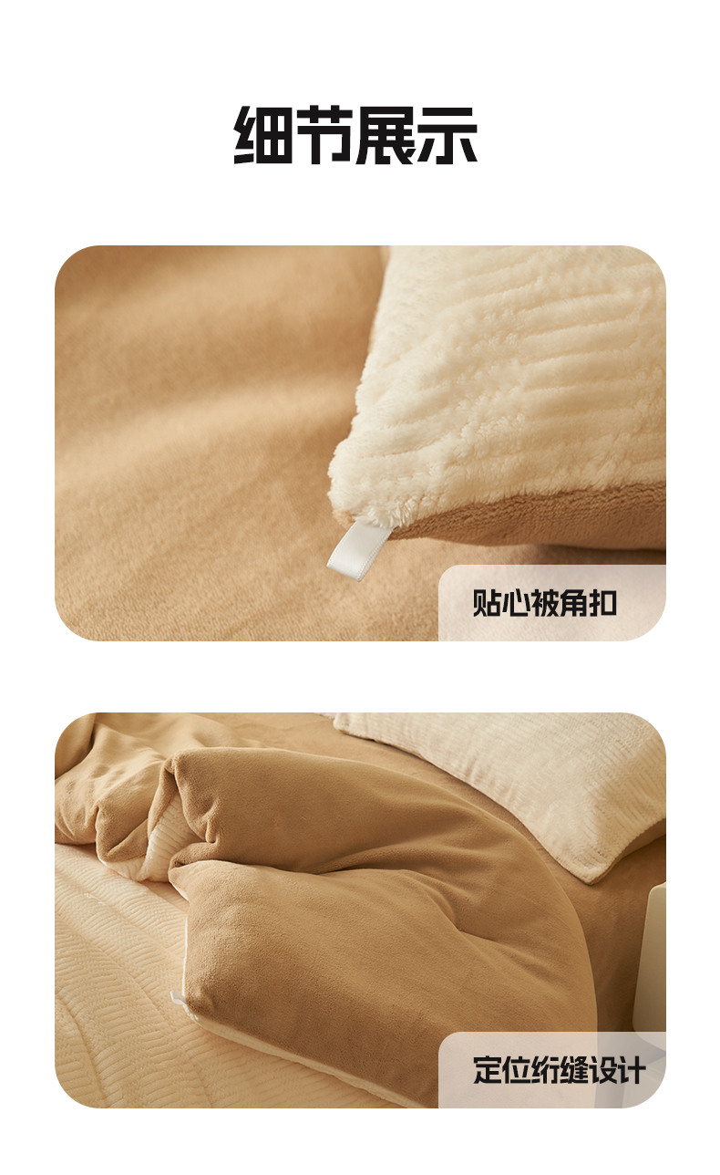 • 91家纺网 家纺一手货源 找家纺 2024新款牛奶绒提花围棋格冬被四件套 格子-白拼奶咖