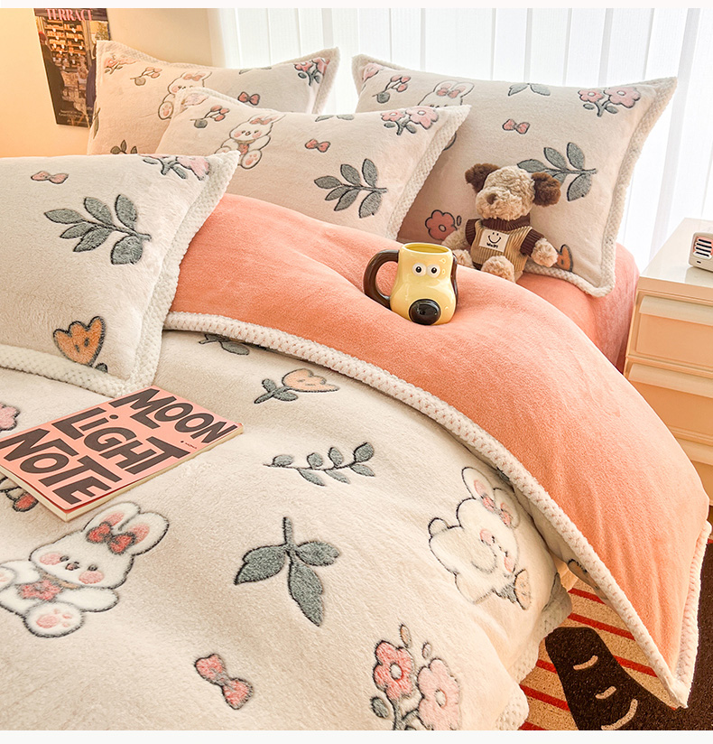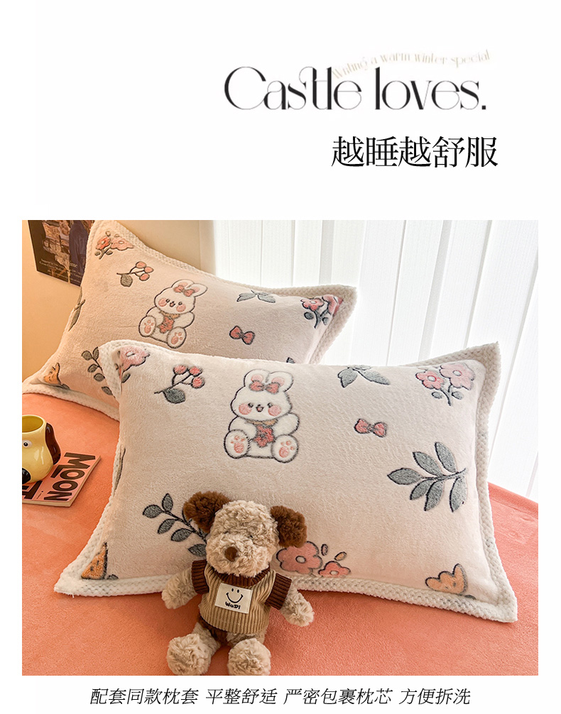 倾慕家纺 2024新款加厚保暖6D立体雪花绒系列-单被套 萌萌兔