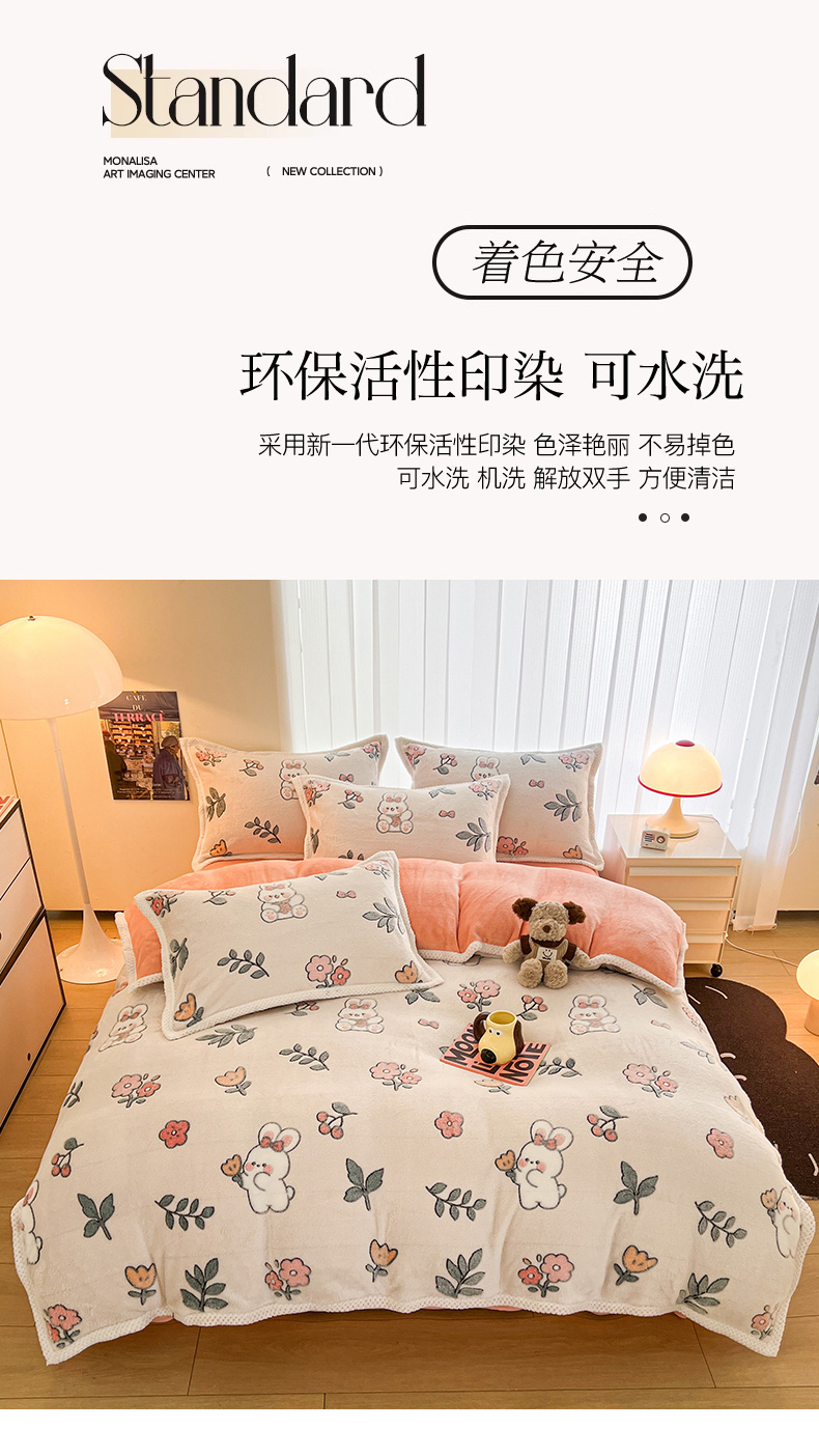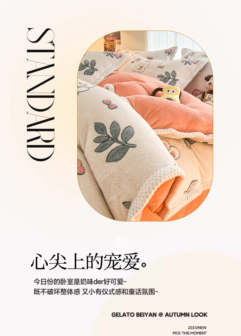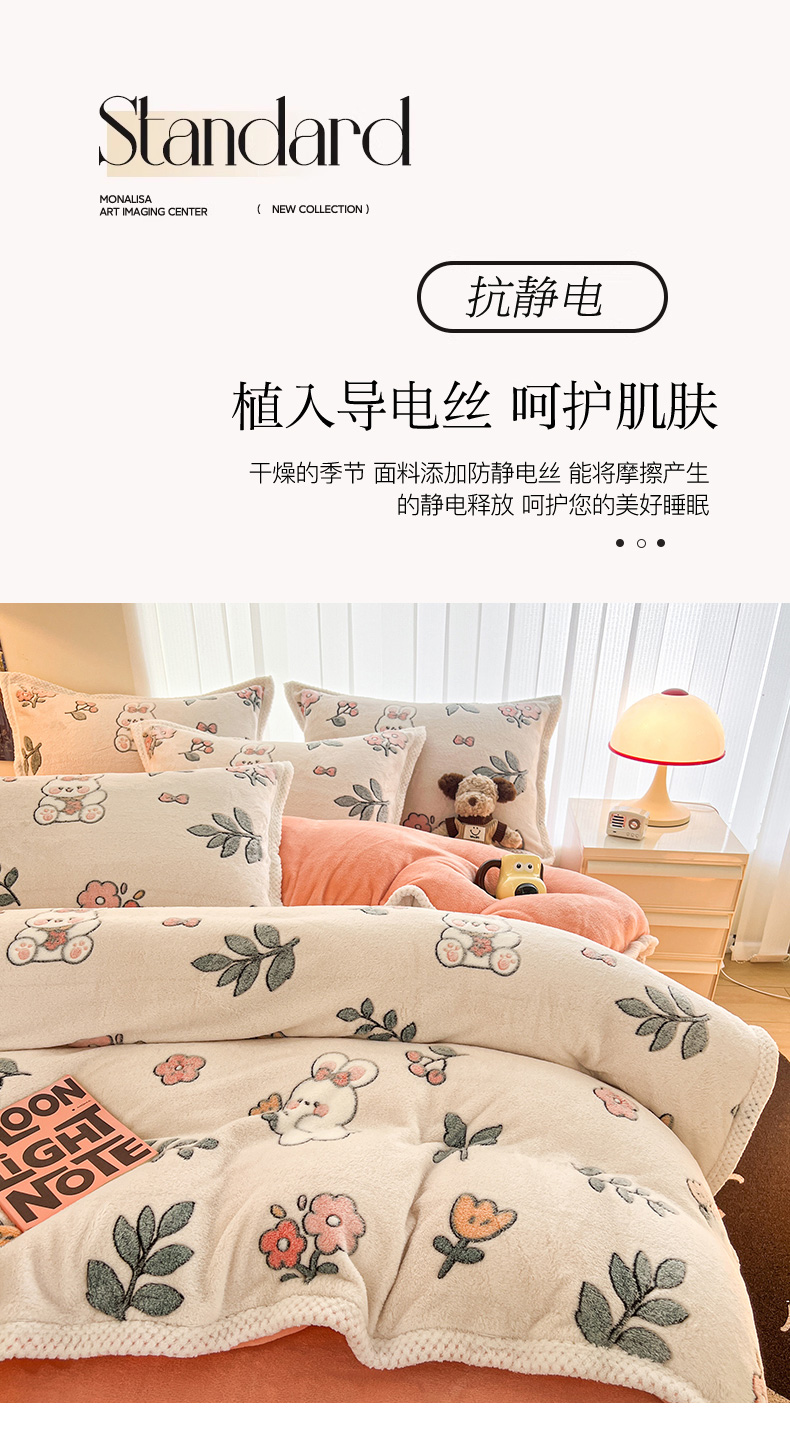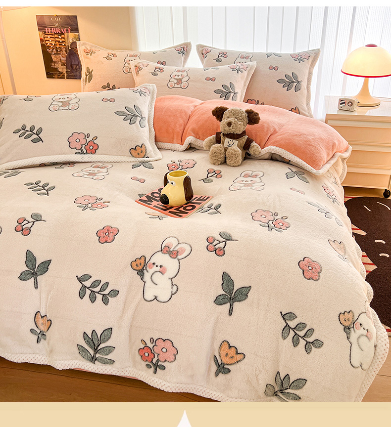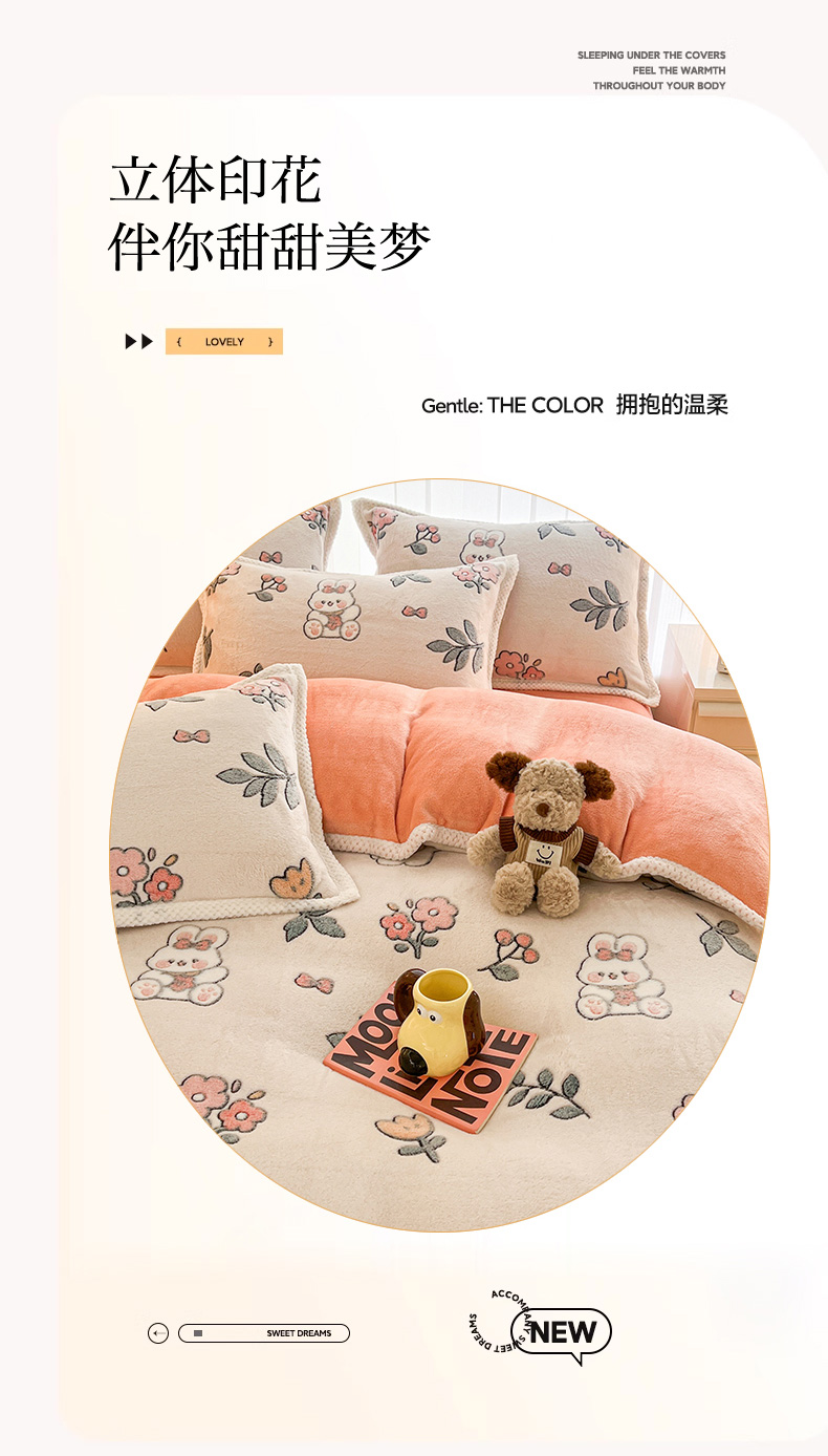 (总)倾慕家纺 2025新款卡通毛巾绣加厚保暖牛奶绒四件套,爱心女孩,咖啡小狗,猫咪熊兔,迷你小车,圣诞树熊,音乐企鹅