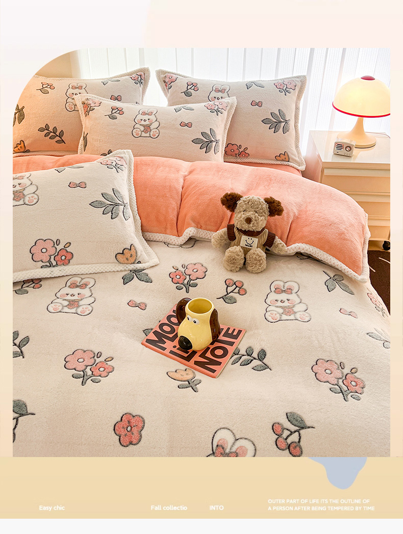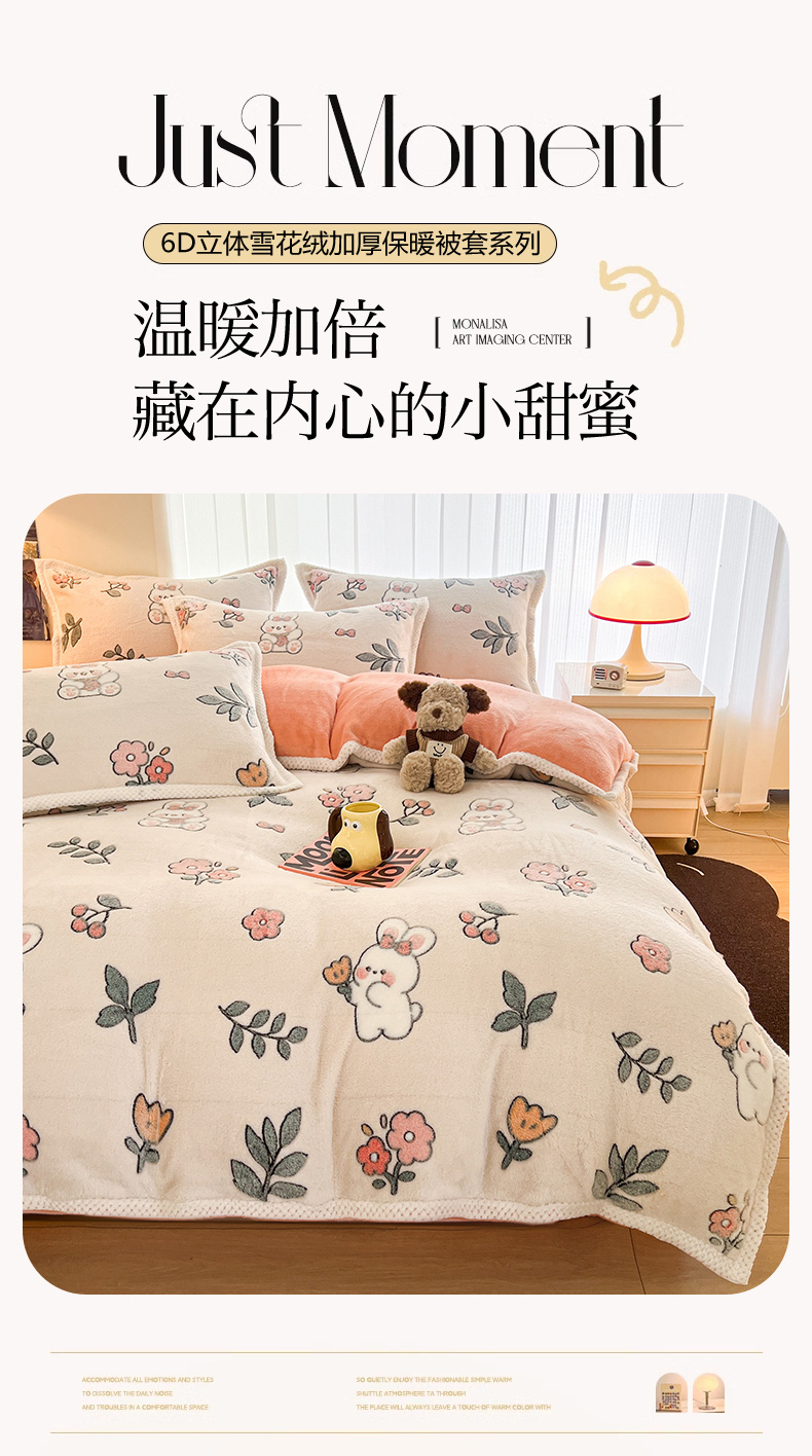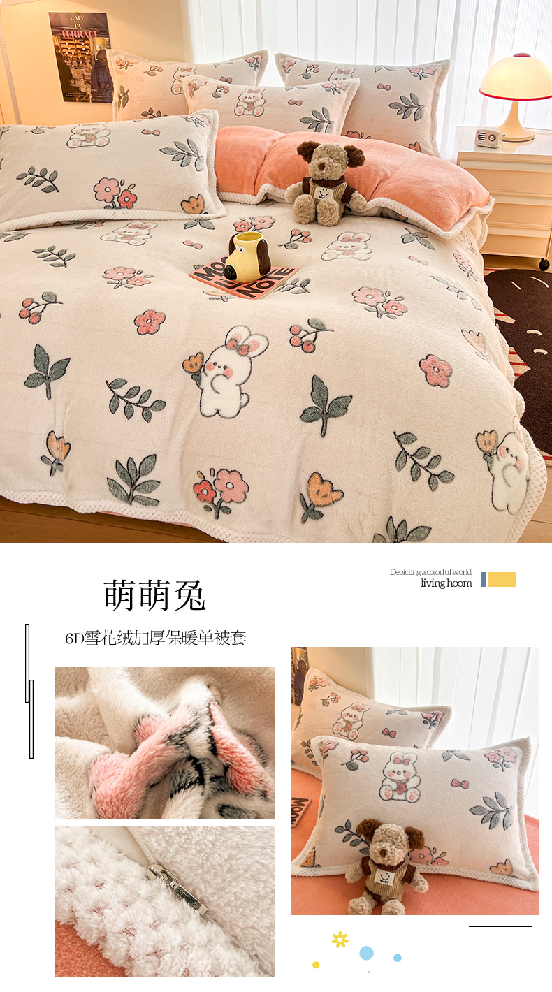 商品名称:倾慕家纺 2024新款加厚保暖6D立体雪花绒系列-单被套 萌萌兔