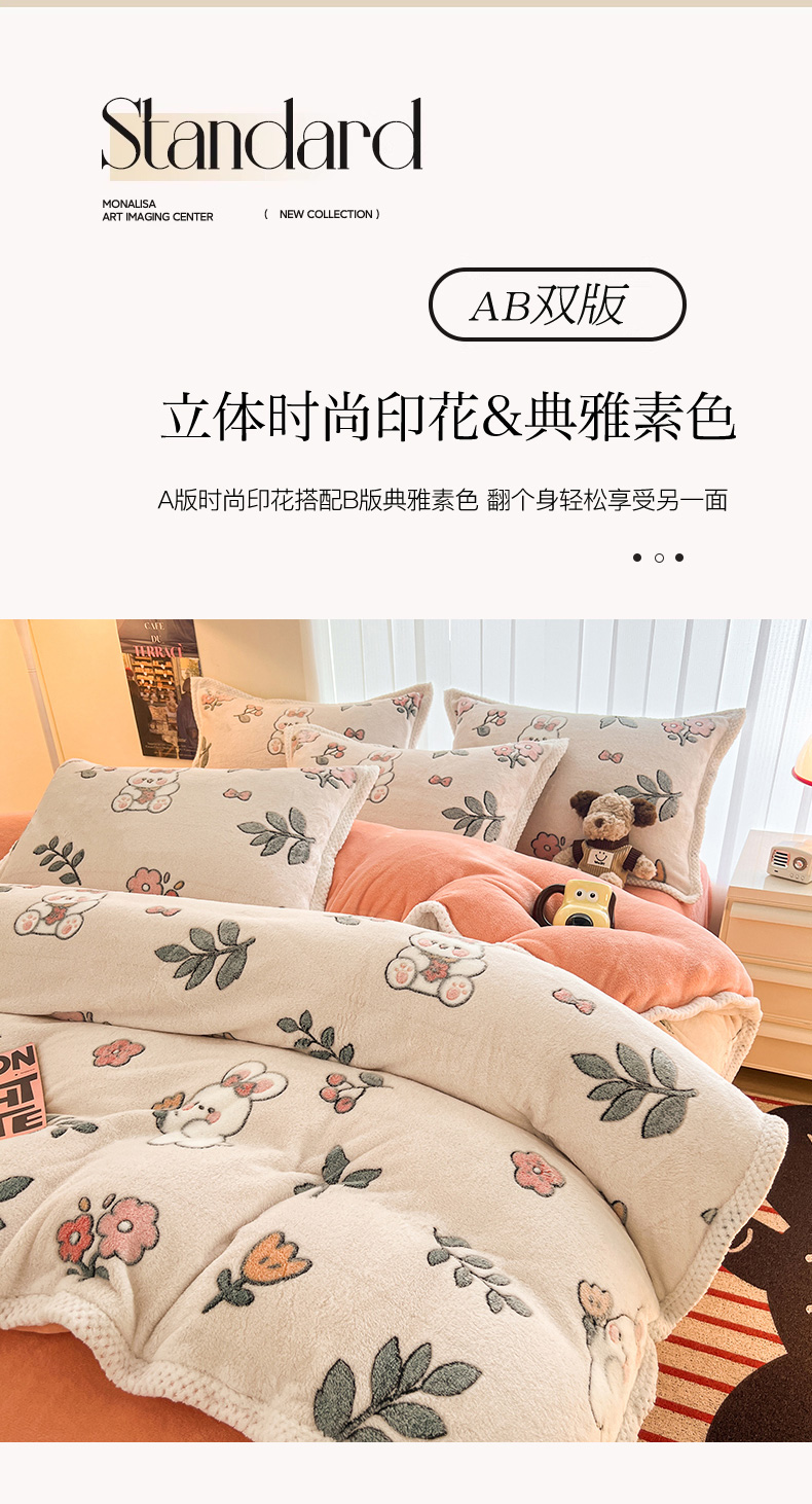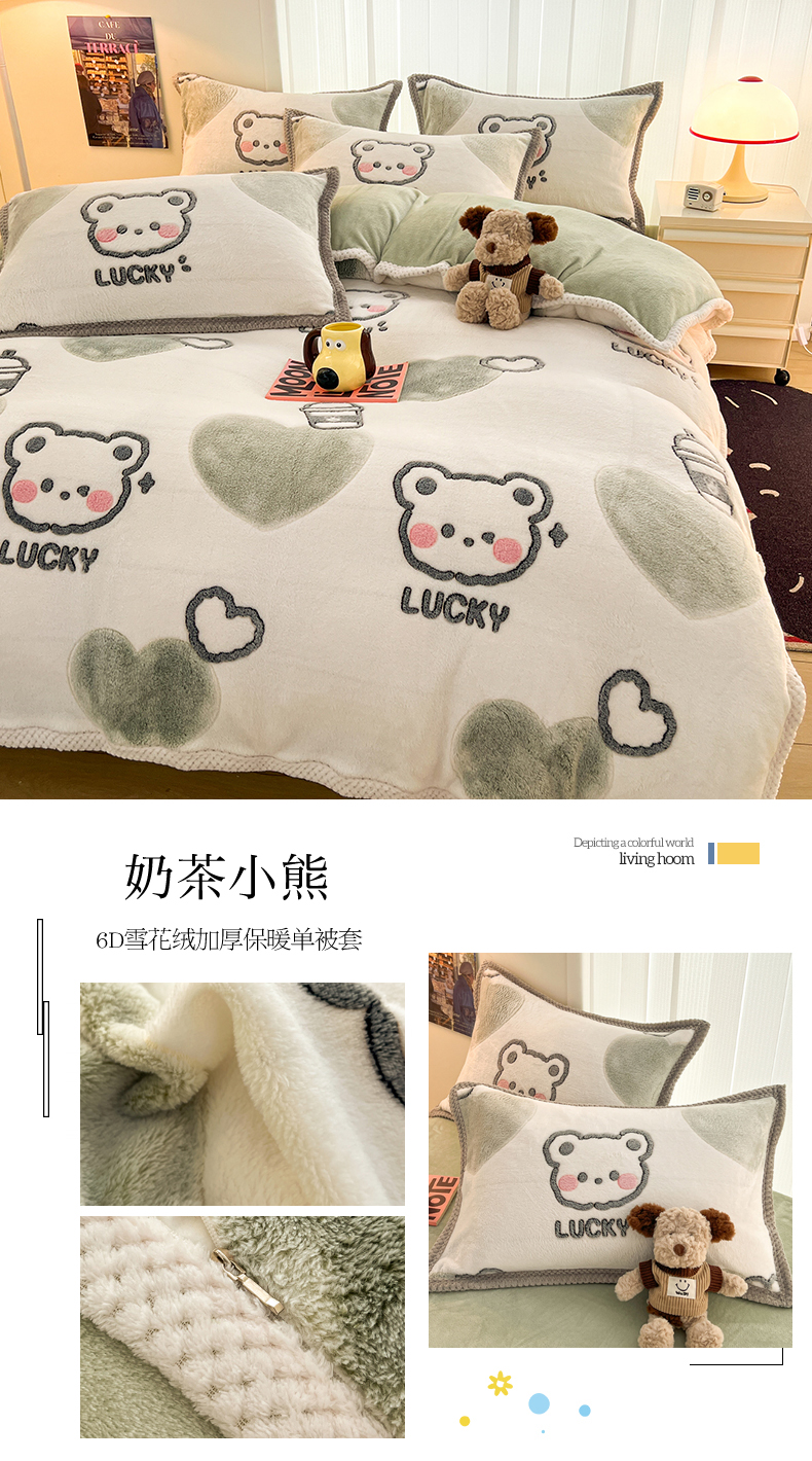 (总)倾慕 2025新款6D立体雪花绒系列四件套,北欧小熊,波波兔,波点头像,格格狗,欢乐小虎,活泼小兔,咖啡熊兔,礼物小狗,萌宠小兔,奶茶小龙灰,奶茶小龙蓝,奶茶小熊,汽车小熊,森林公园,时光小狗,时尚猫咪,小皮皮