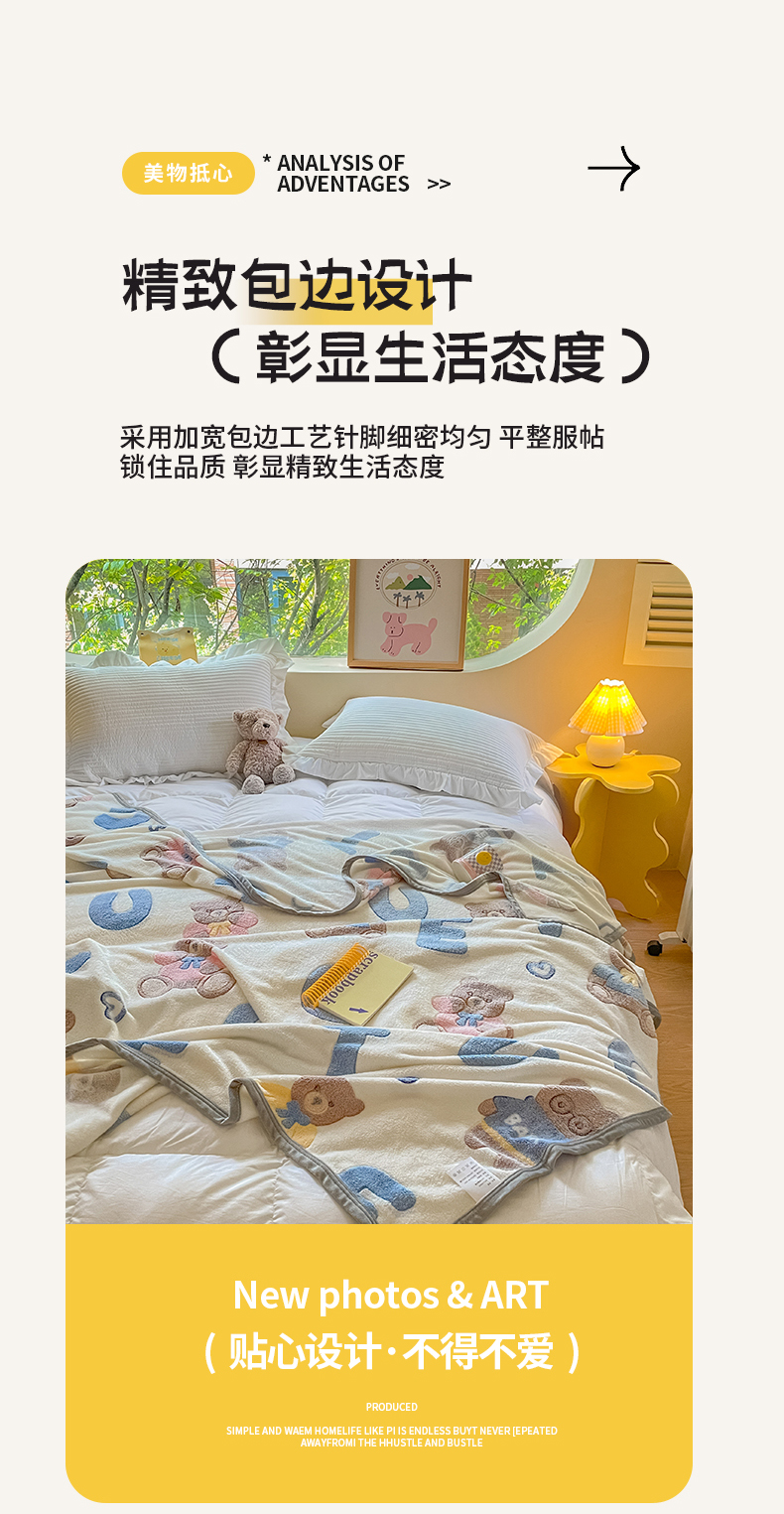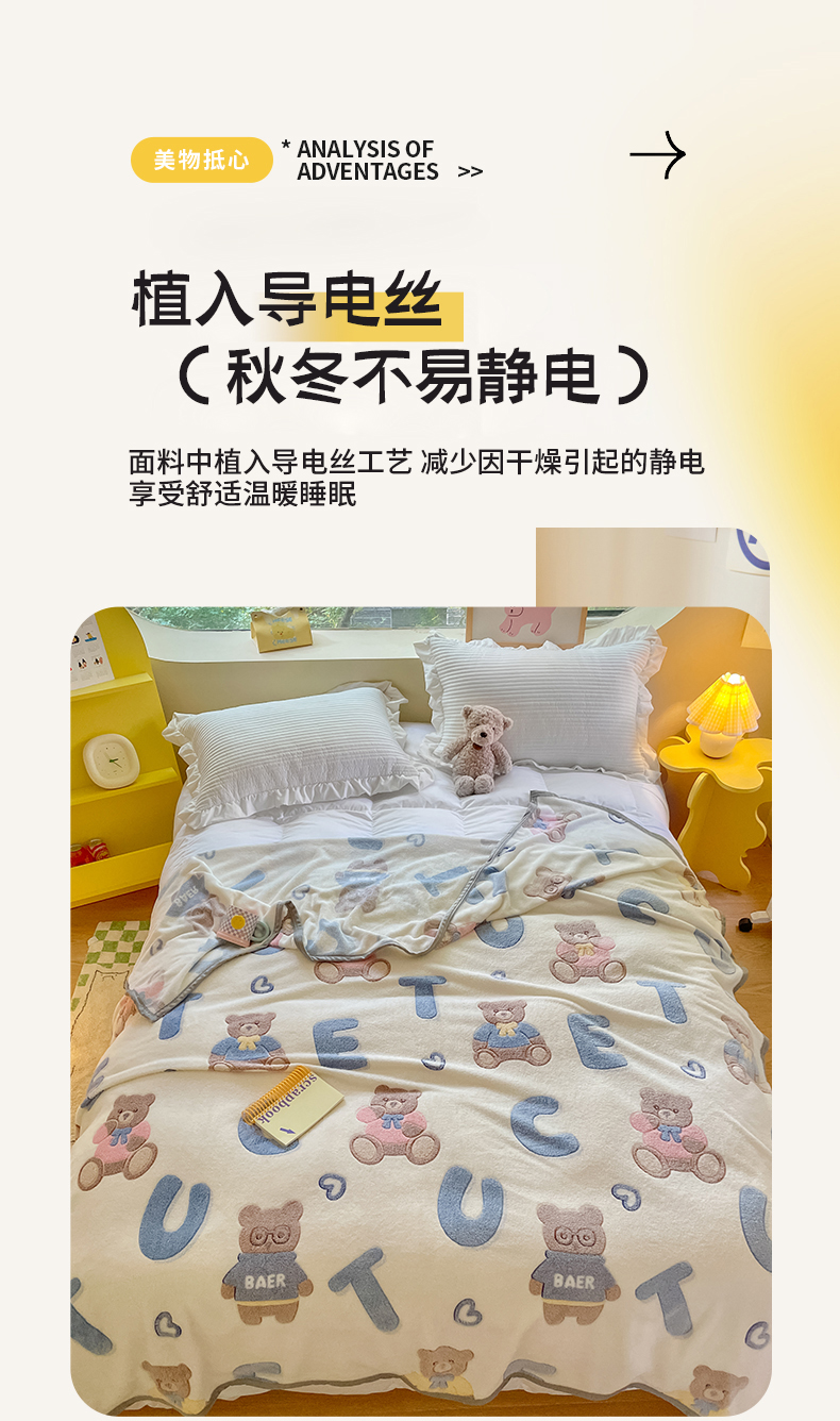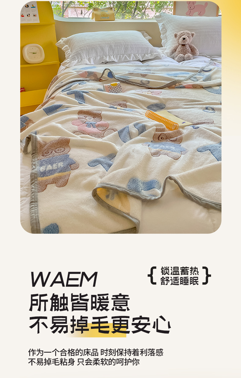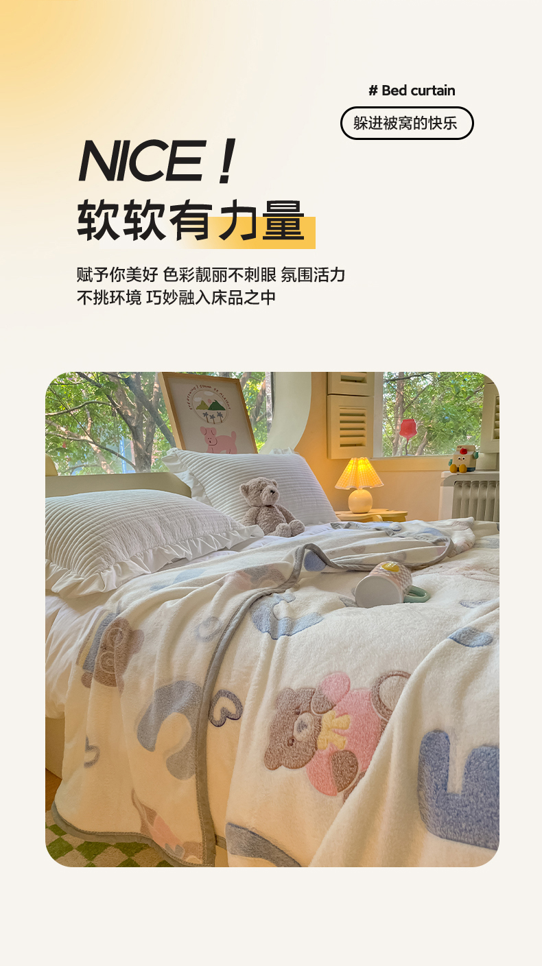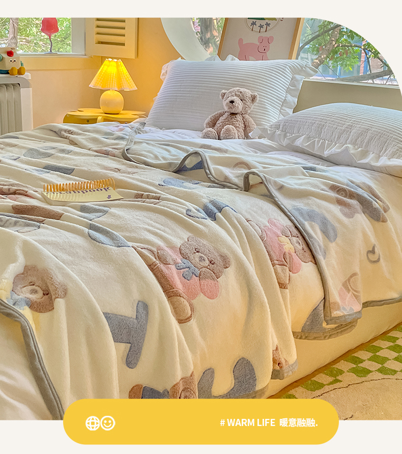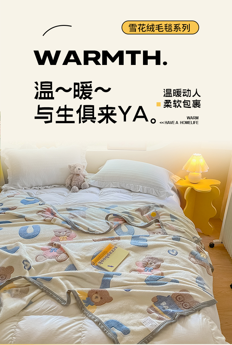 慕尚家纺 2025新款高克重加厚雪花绒毛毯毯子 字母熊