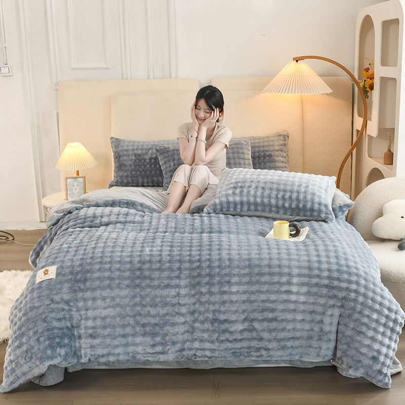 商品名称:卡迪亚家纺 2024新款亲肤舒适泡泡绒四件套 浅灰