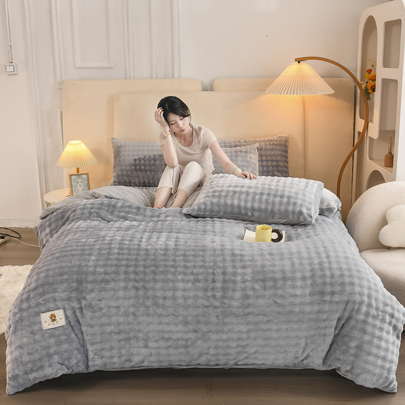 卡迪亚家纺 2024新款亲肤舒适泡泡绒四件套 浅灰