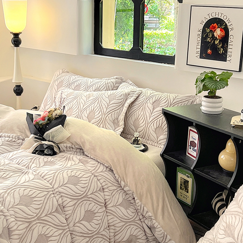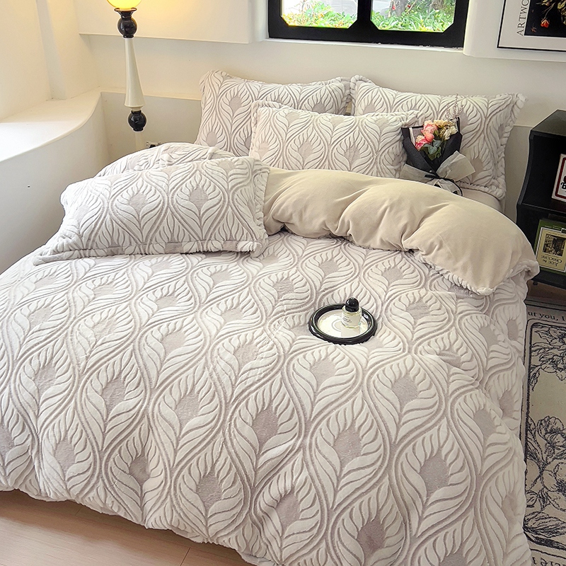 (总)昊川家纺 2025新款短毛绒牛奶绒立体雕花四件套,烟花-蓝灰,花影-蓝灰,暖阳-黄,珍珠玫瑰,斑马 斑马,花语-豆沙,克洛伊-咖,花影绿,叶之恋-蓝,山谷百合-灰,祥云,雅致-灰,烟花-豆沙,叶舞,叶之恋暖阳咖,暖阳-粉,清雅-灰,简约-咖