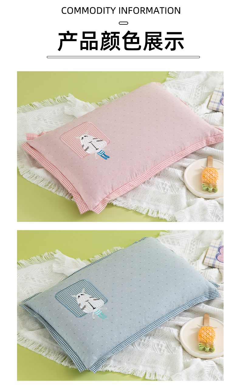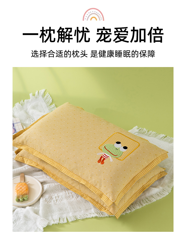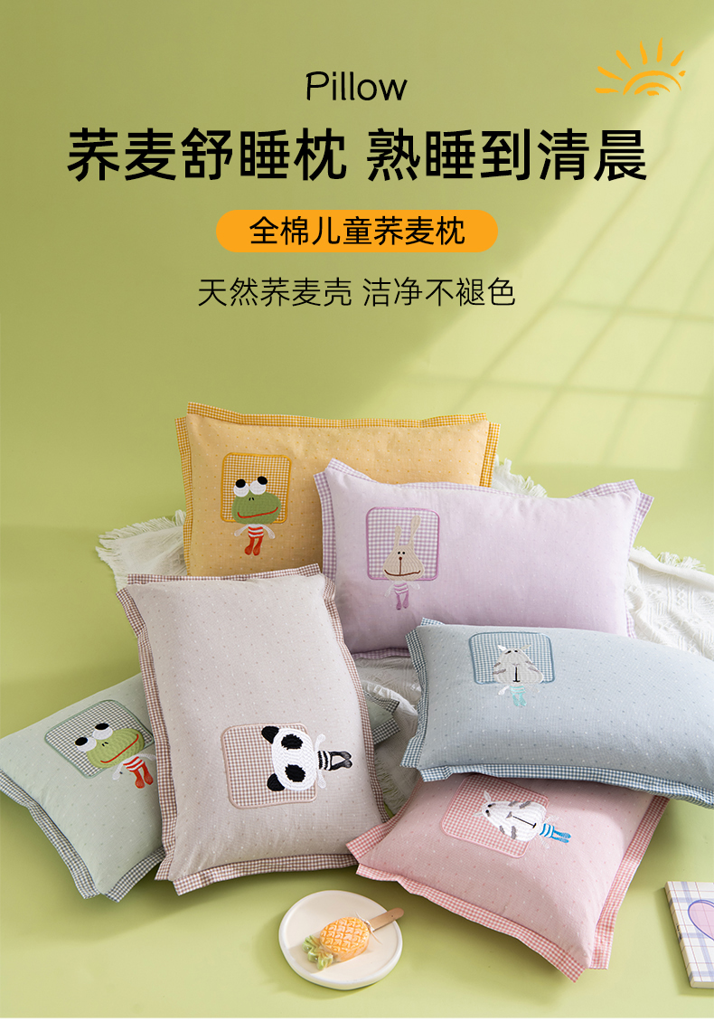 商品名称:(总)织布人 2024新款荞麦枕全棉卡通贴布绣多巴胺色系儿童学生宿舍荞麦枕头