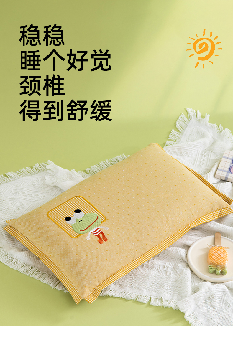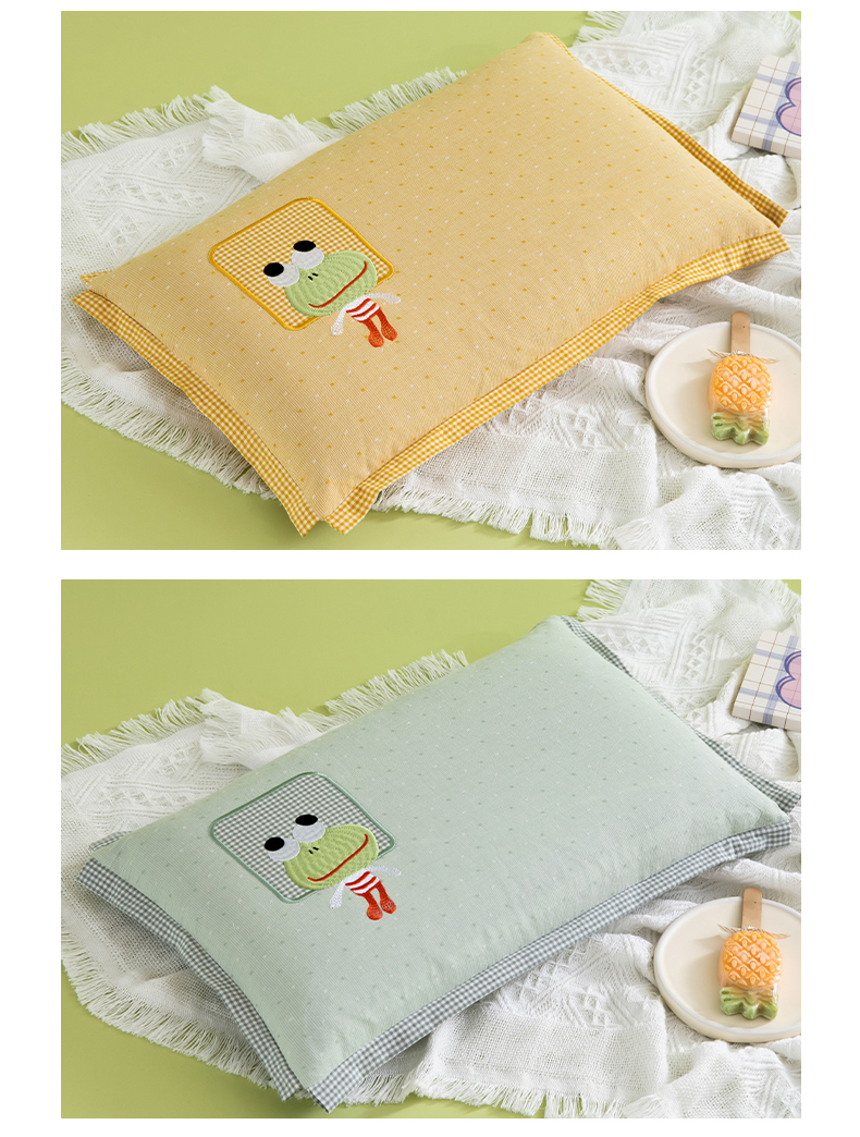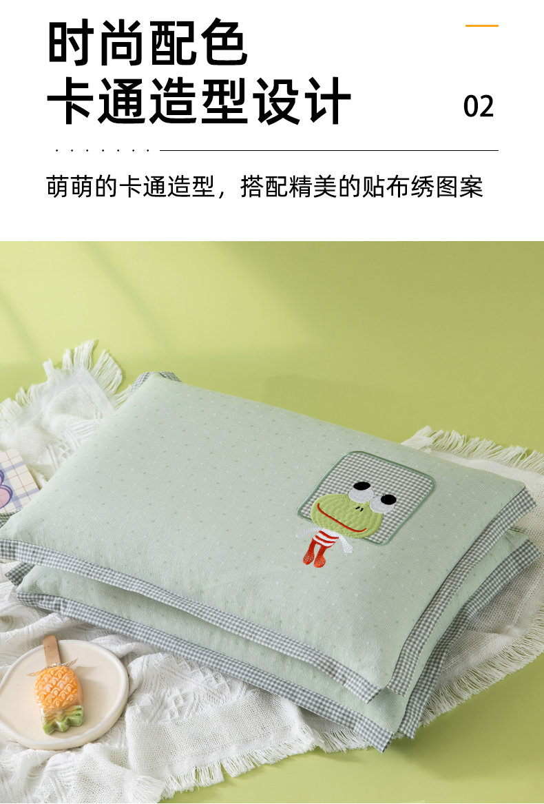 全棉卡通-小青蛙荞麦枕-草绿