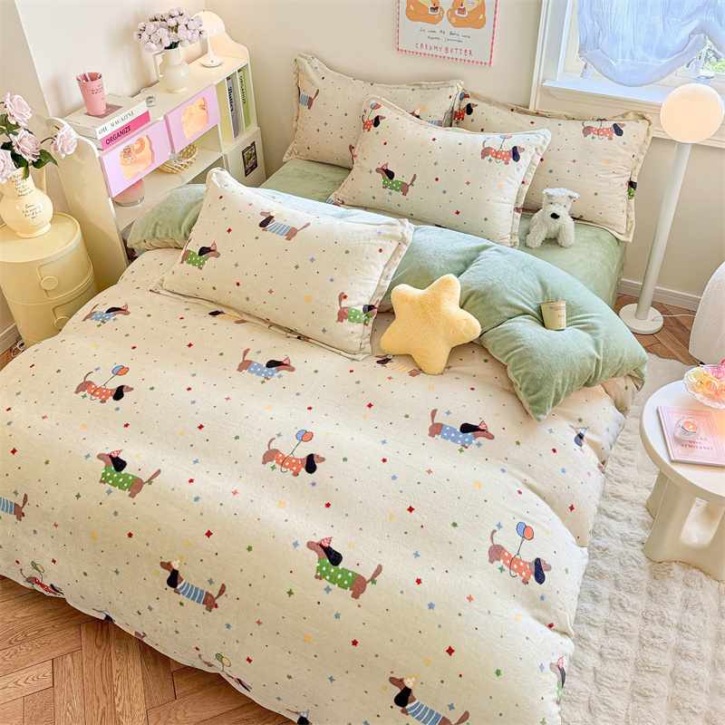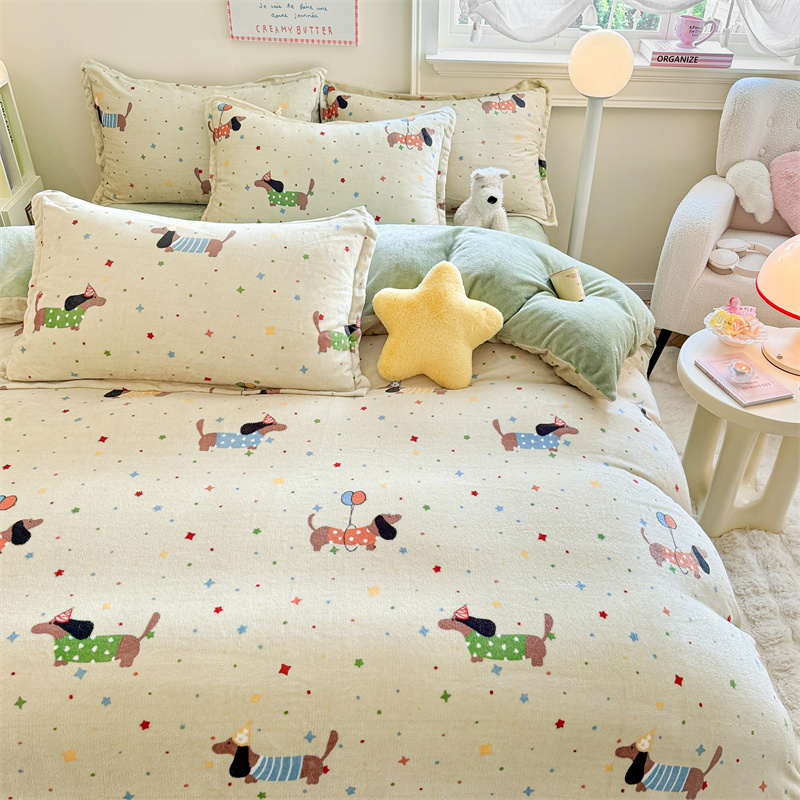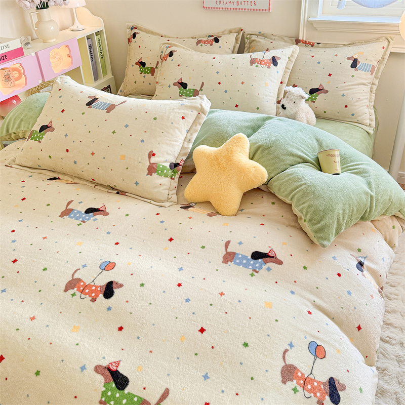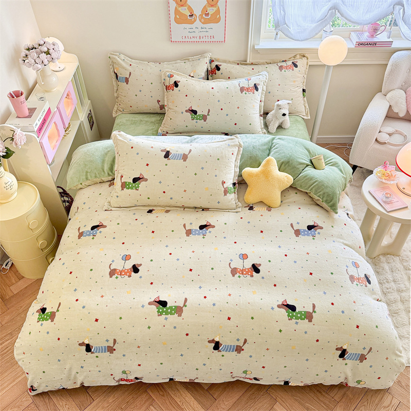 当前位置: 91家纺网 > 商品网购 > 床品套件 > 四件套 > 牛奶绒四件套 > 名兮 2024新款卡通时尚风高克重牛奶绒四件套 腊肠狗