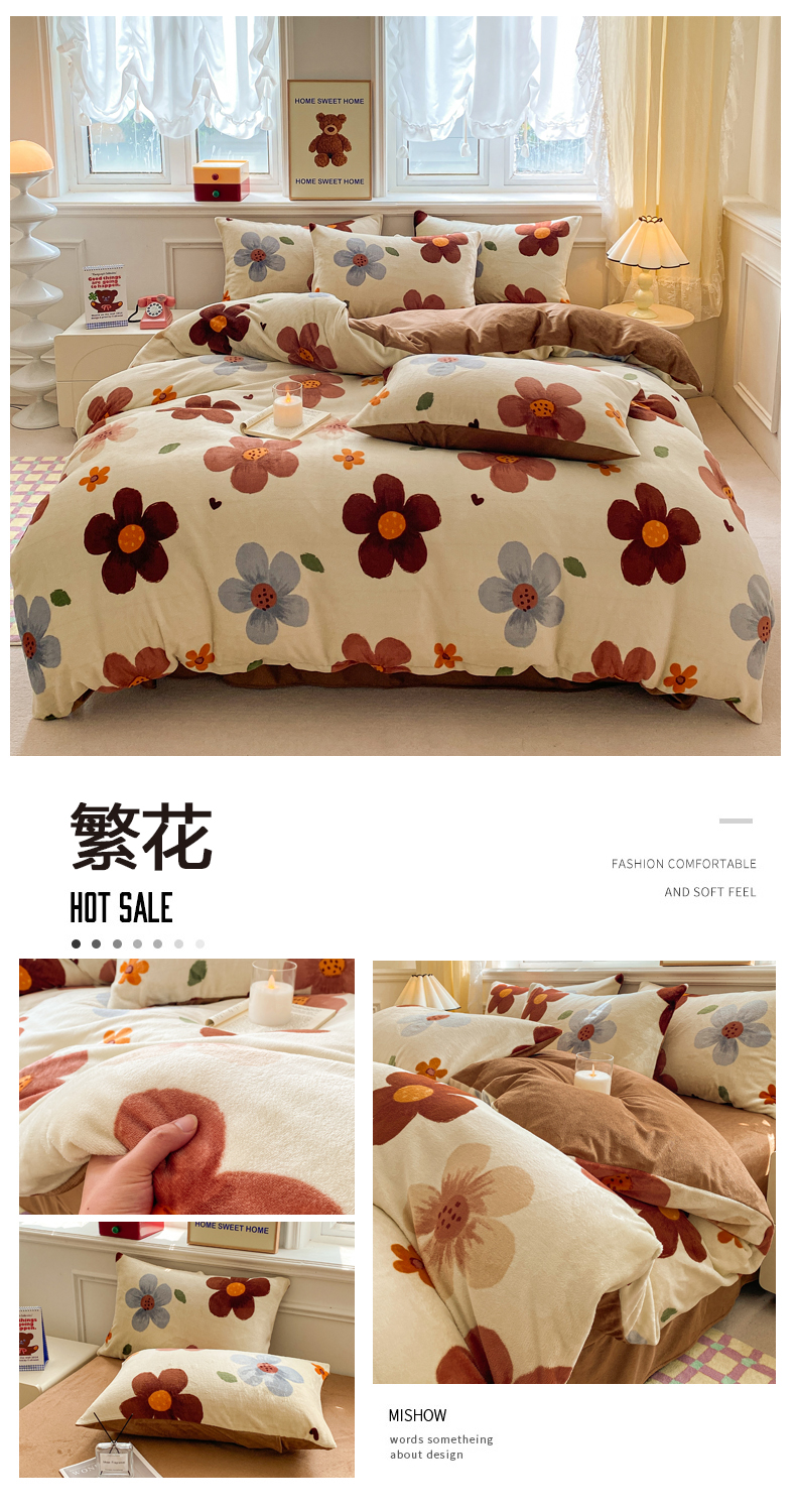 斯卡诺2025新款直播轻奢爆款小清新牛奶宝宝绒四件套 繁华