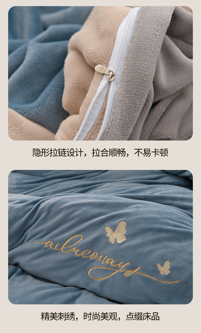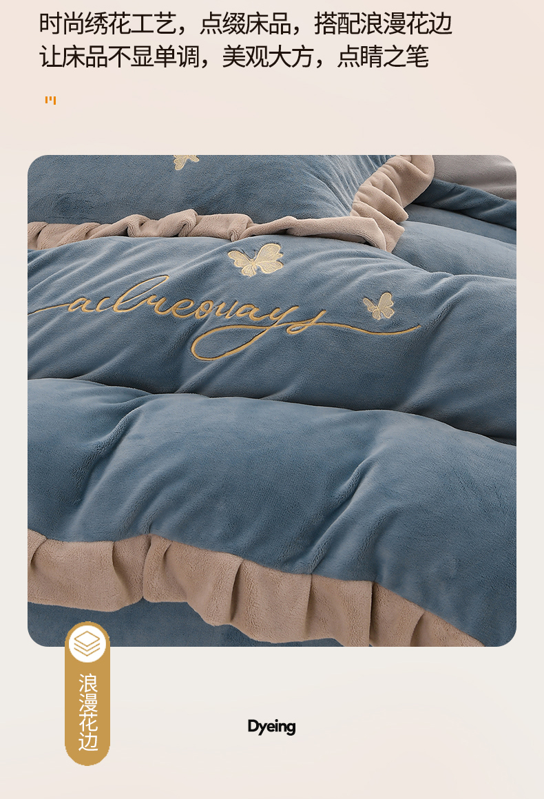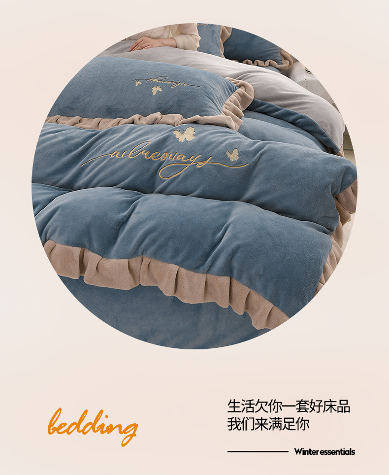 商品名称:氧家 2024新款韩版牛奶绒绣花四件套--蝶恋 羽蝶-槟利兰