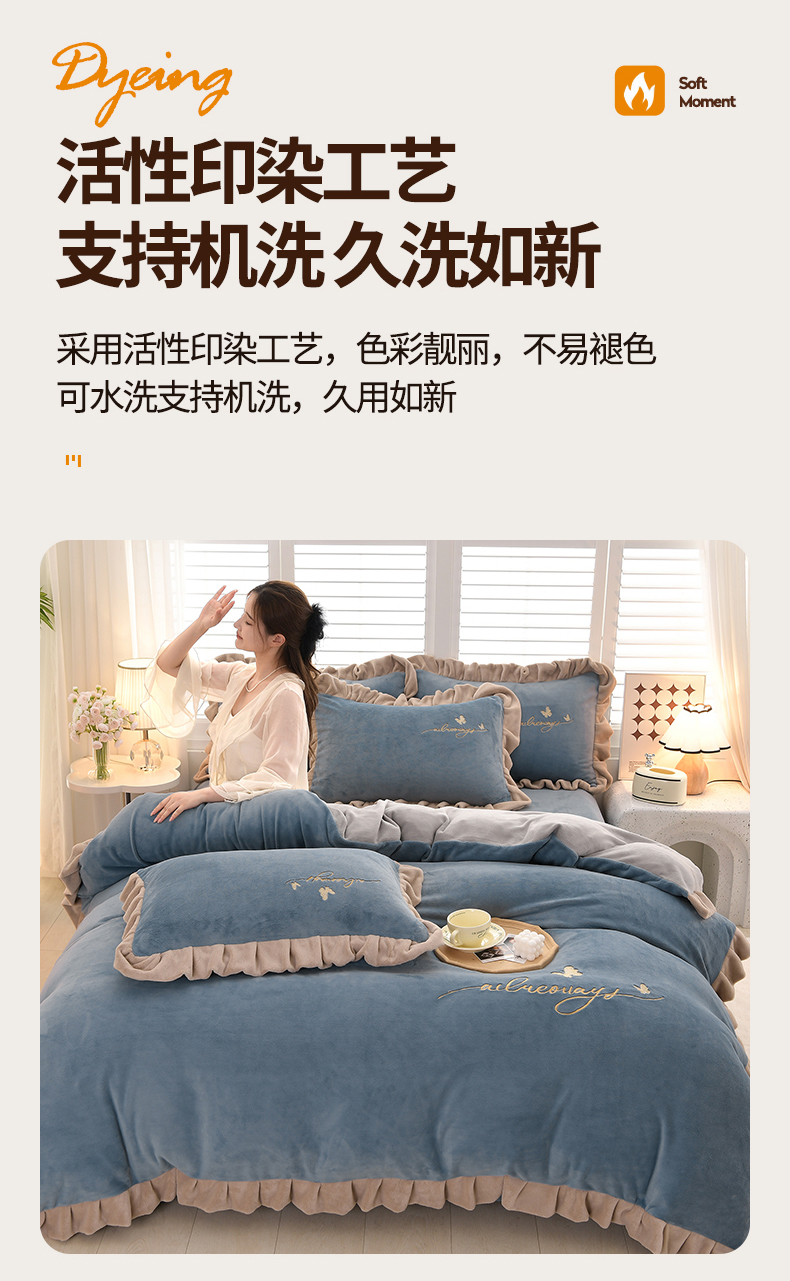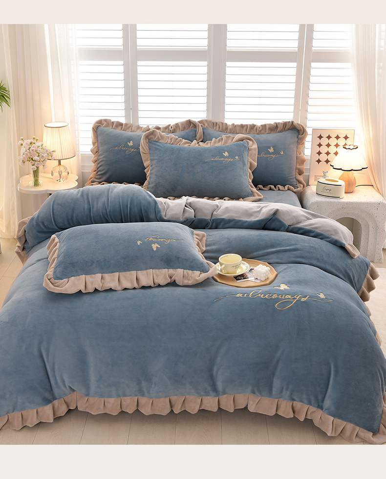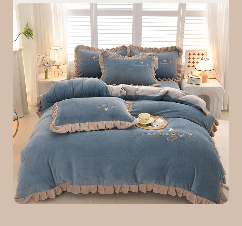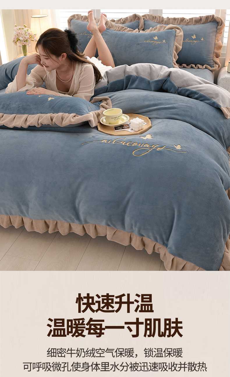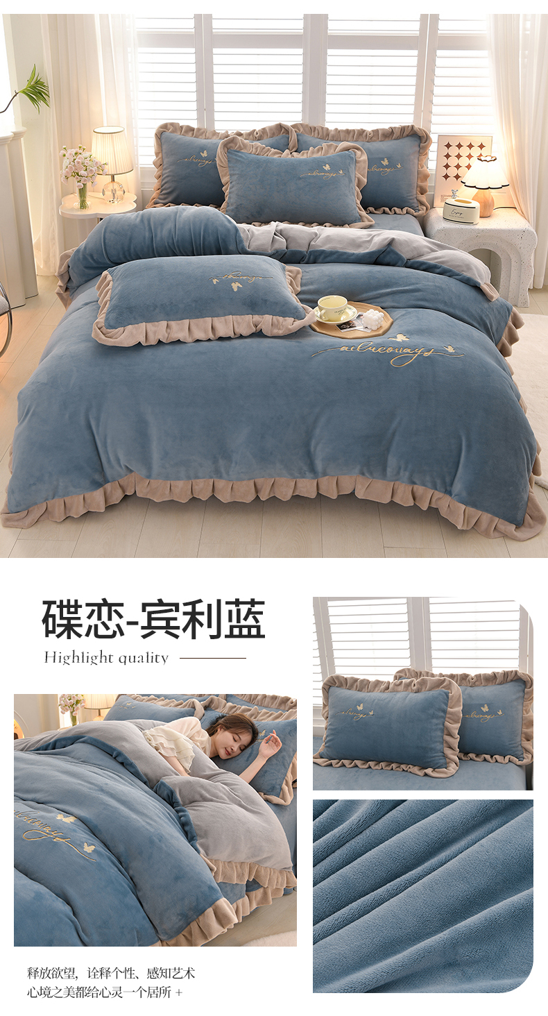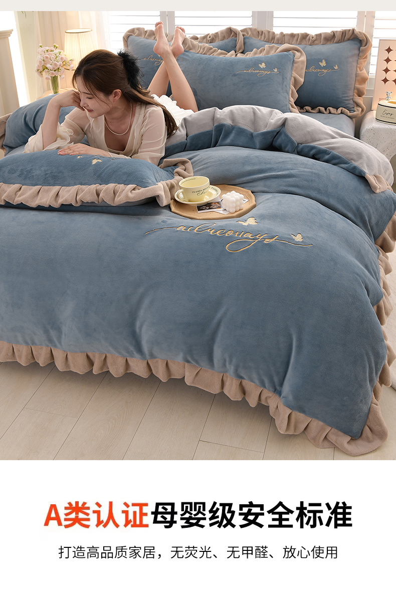 (总)氧家 2025款韩版纯色双层花边加厚牛奶绒四件套 ,素颜-宾利蓝(浅),素颜-橙橘色,素颜-高雅白,素颜-卡琪,素颜-浅豆沙,素颜-时尚灰,素颜-熏韵紫