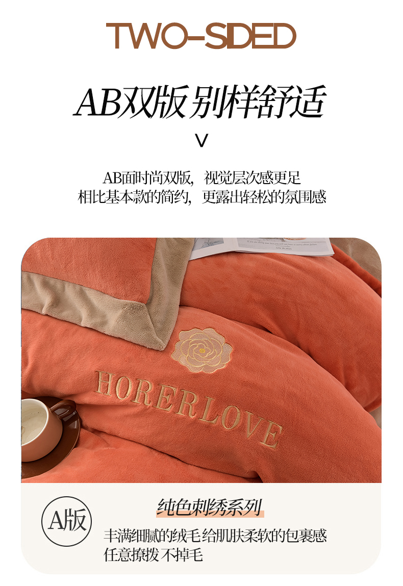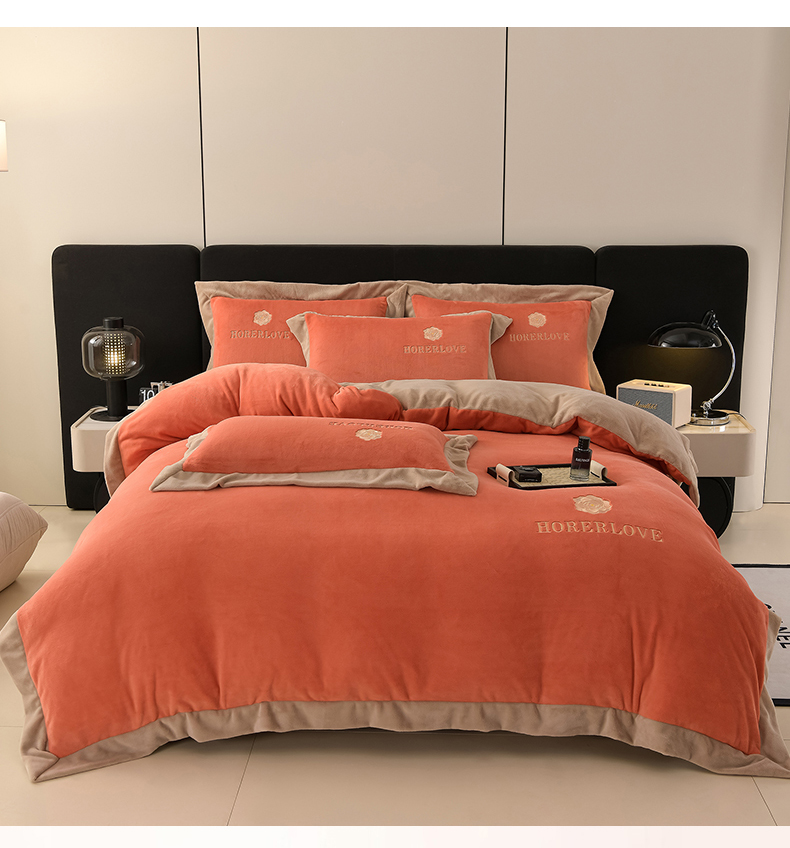 (总)氧家 2025新款高克重牛奶绒拼角刺绣床单床笠床盖款四件套-经典,经典-蓝,经典-橙,经典-豆沙,经典-灰,经典-绿,经典-奶白,经典-紫,经典-棕