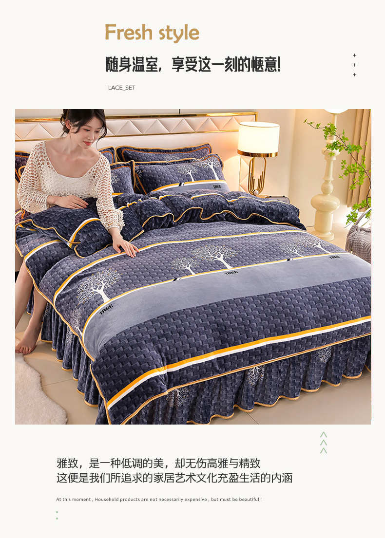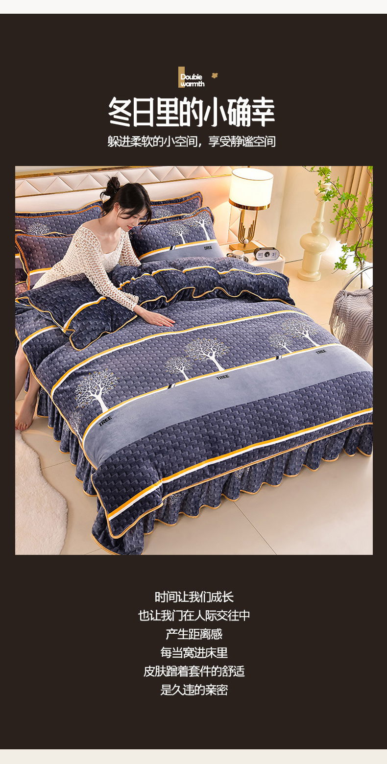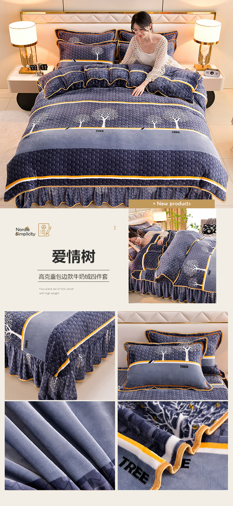沐妍家纺 2024新款7斤牛奶法莱绒金貂绒印花四件套 爱情树