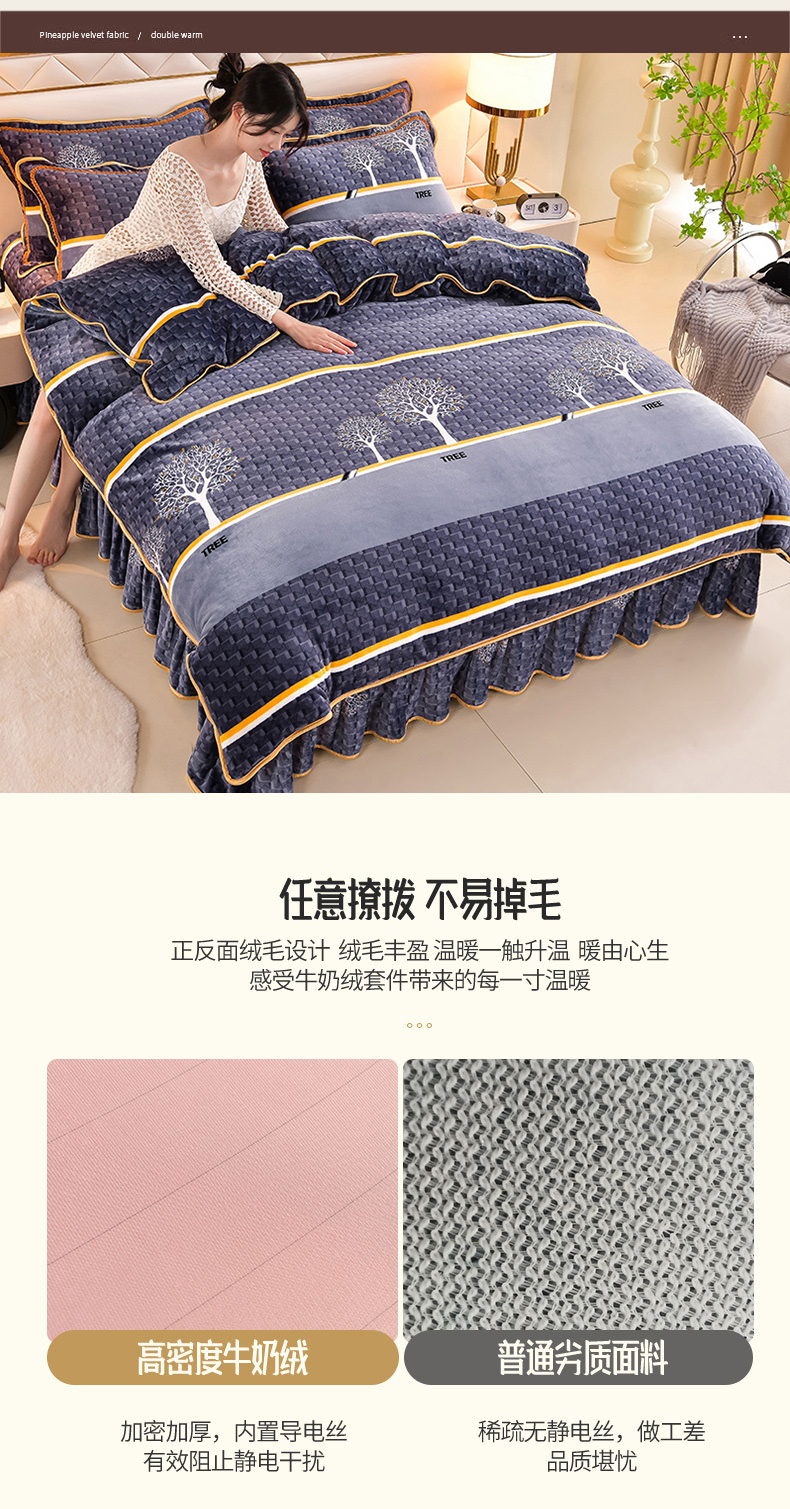商品名称:沐妍家纺 2024新款7斤牛奶法莱绒金貂绒印花四件套 爱情树
