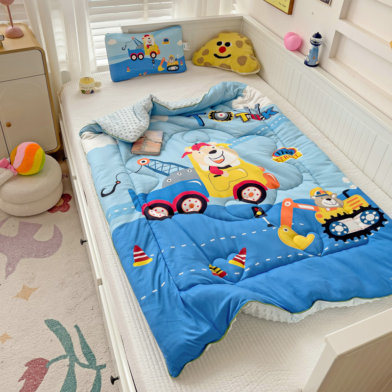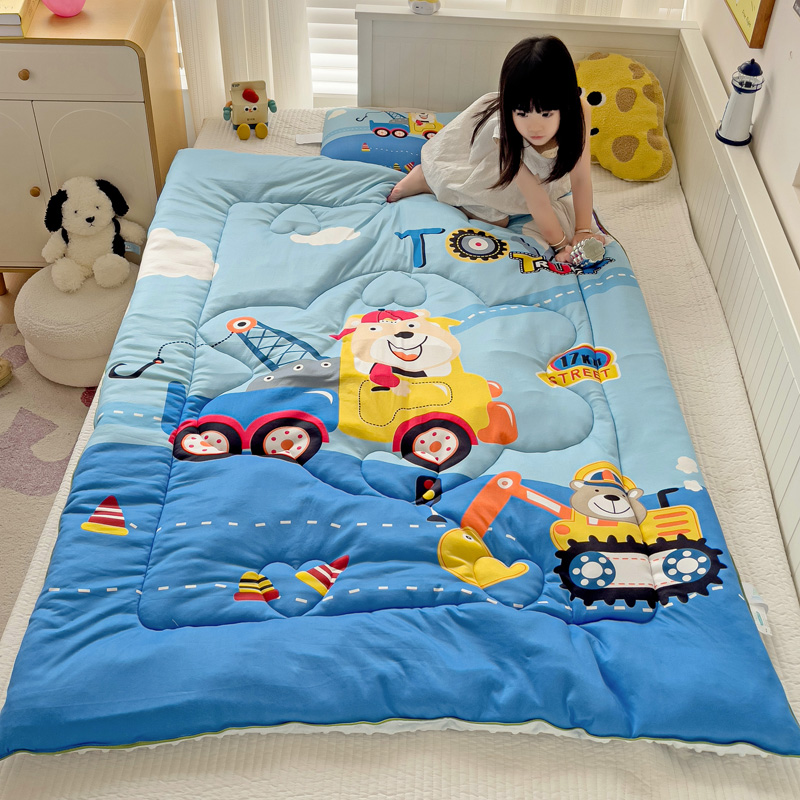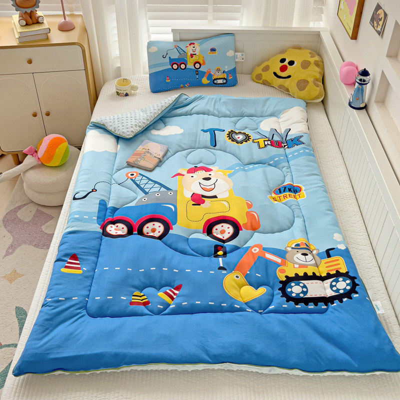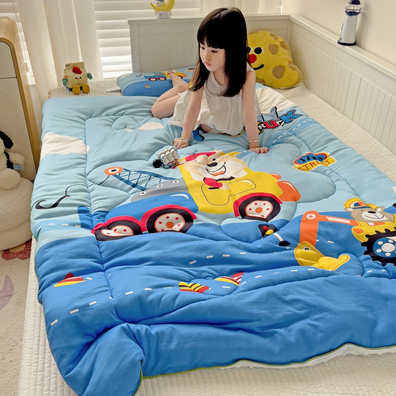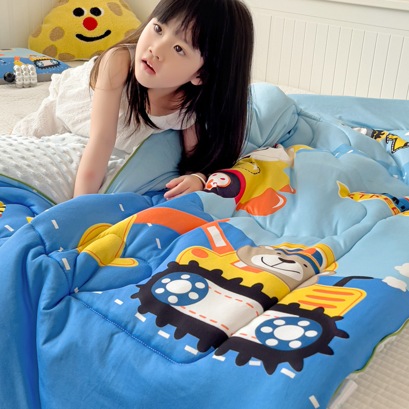 沁童儿童用品店 2024新款大版针织棉安抚豆豆绒儿童被被子被芯 小熊工程车