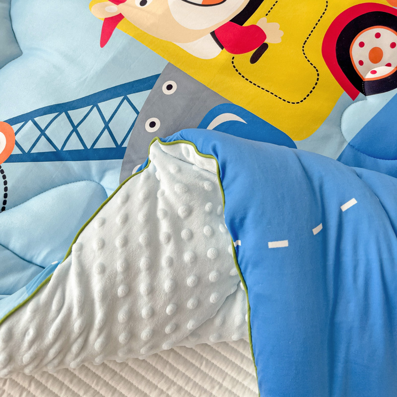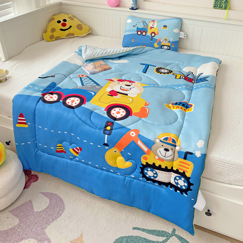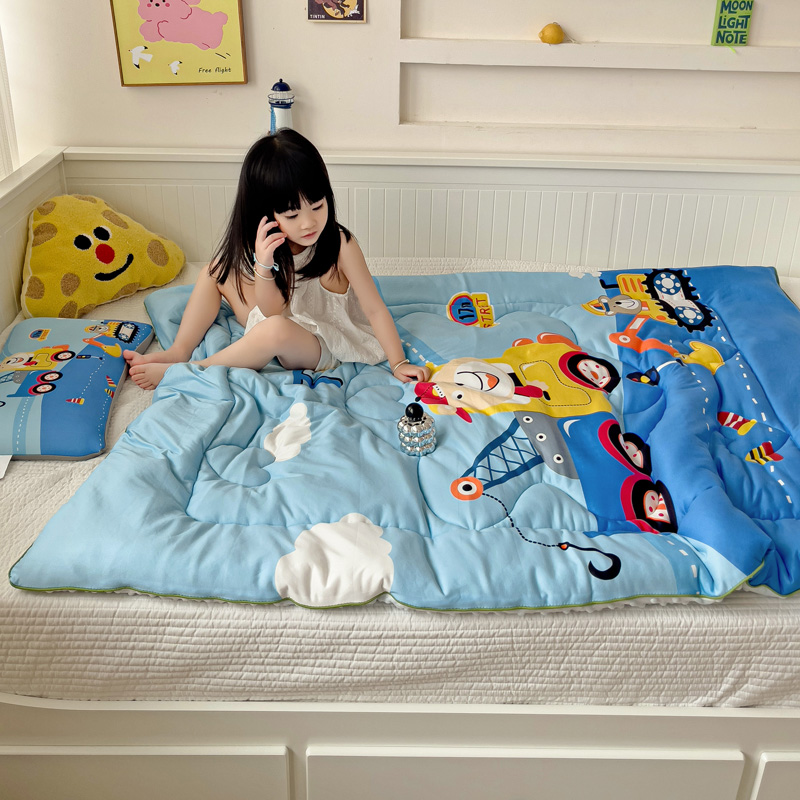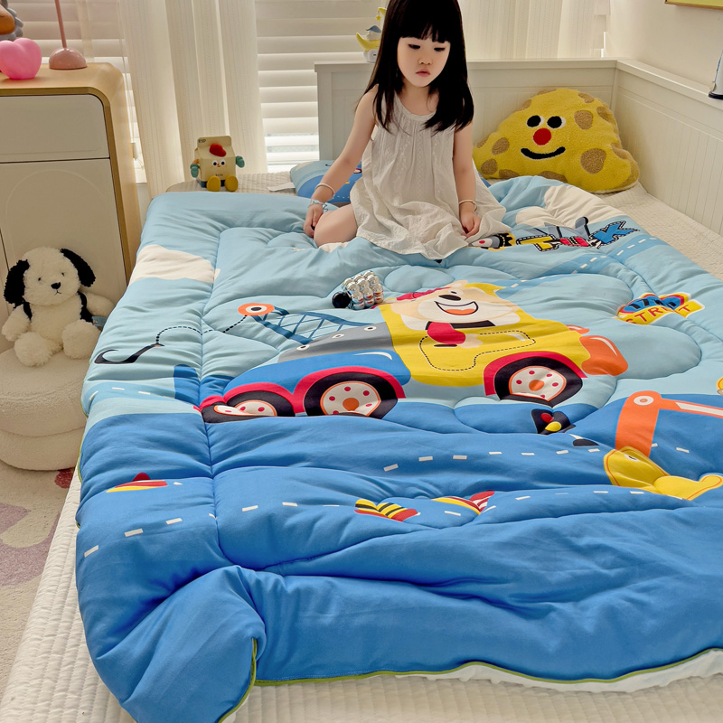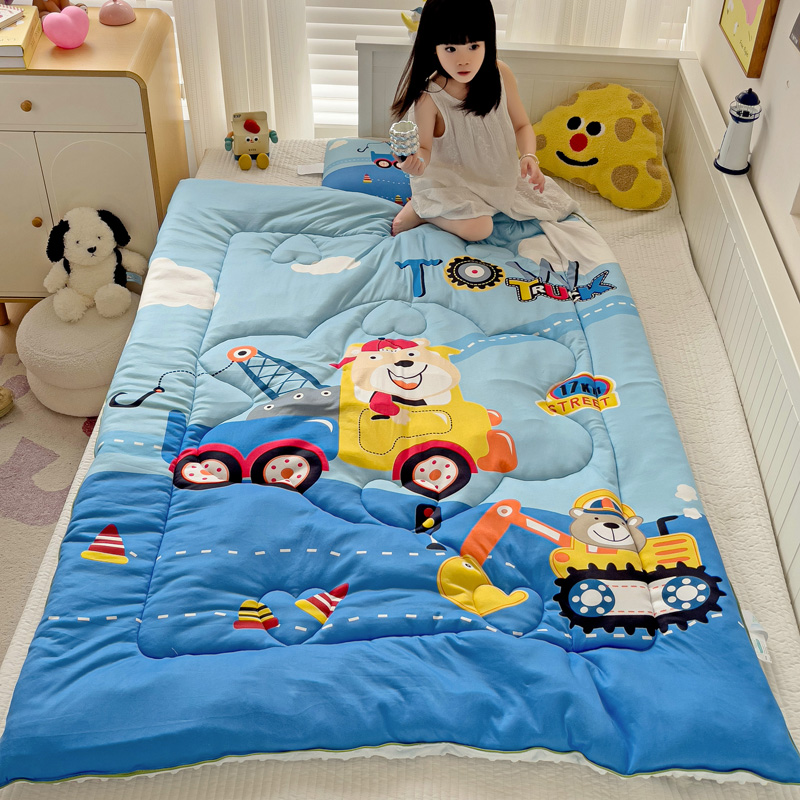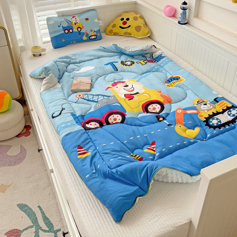 沁童儿童用品店 2024新款大版针织棉安抚豆豆绒儿童被被子被芯 小熊工程车