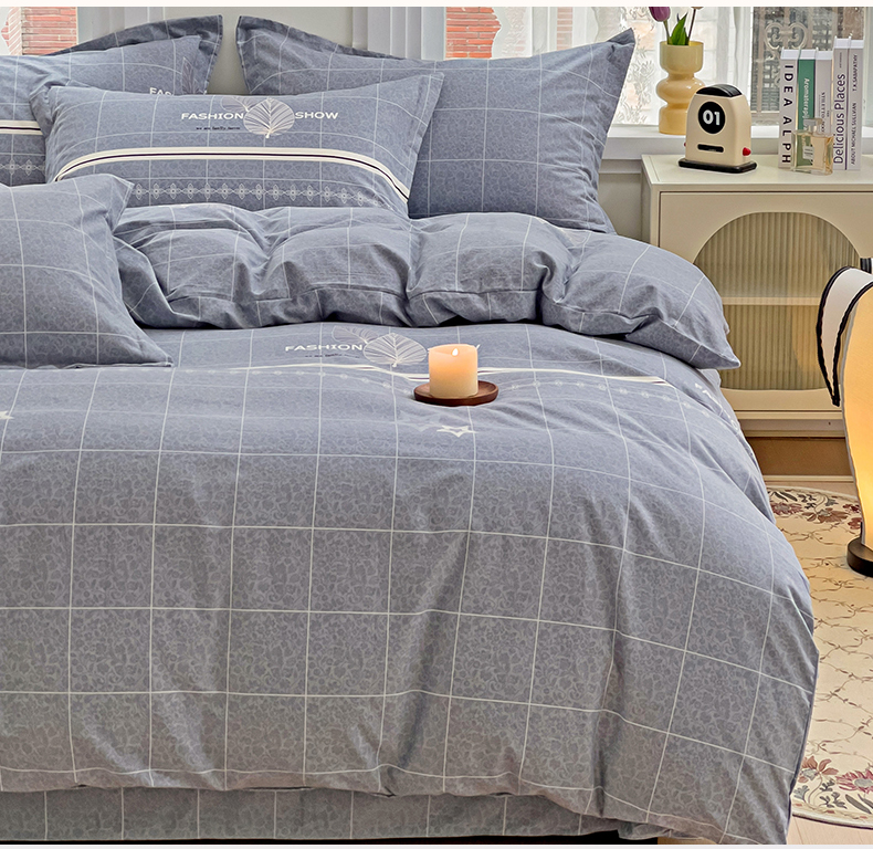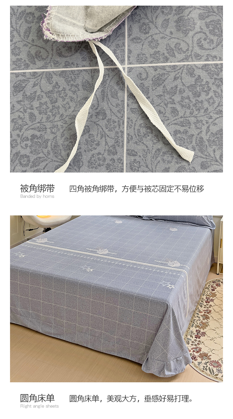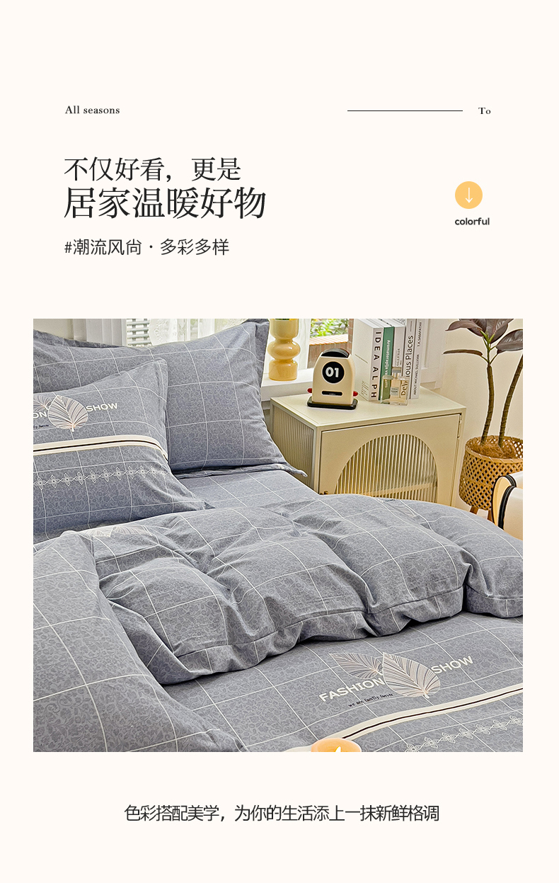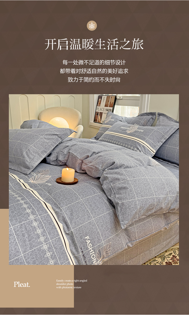 商品名称:品乐家纺 2024新款全棉生态棉印花磨毛四件套 叶语漫漫-灰