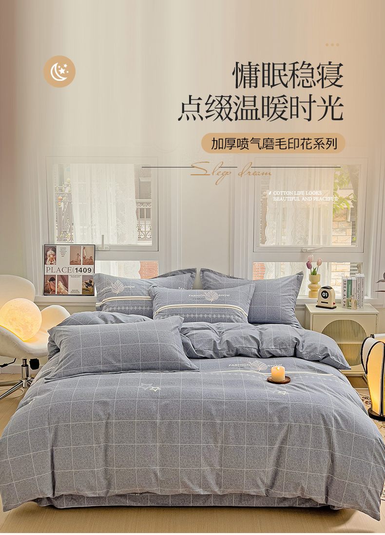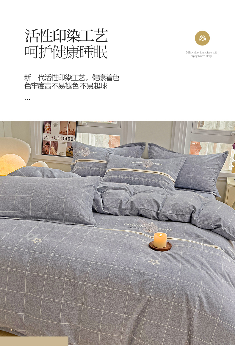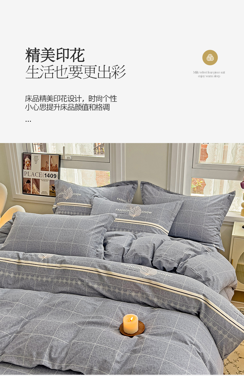 (总)品乐家纺 2025秋冬新款糯米绒缇肤绒印花贝壳边四件套,卡拉-灰,开心熊-米,南笙-咖,南笙-绿,浅夏-咖,素影-酒红,素影-紫,小樱桃-酒红,叶茂-驼