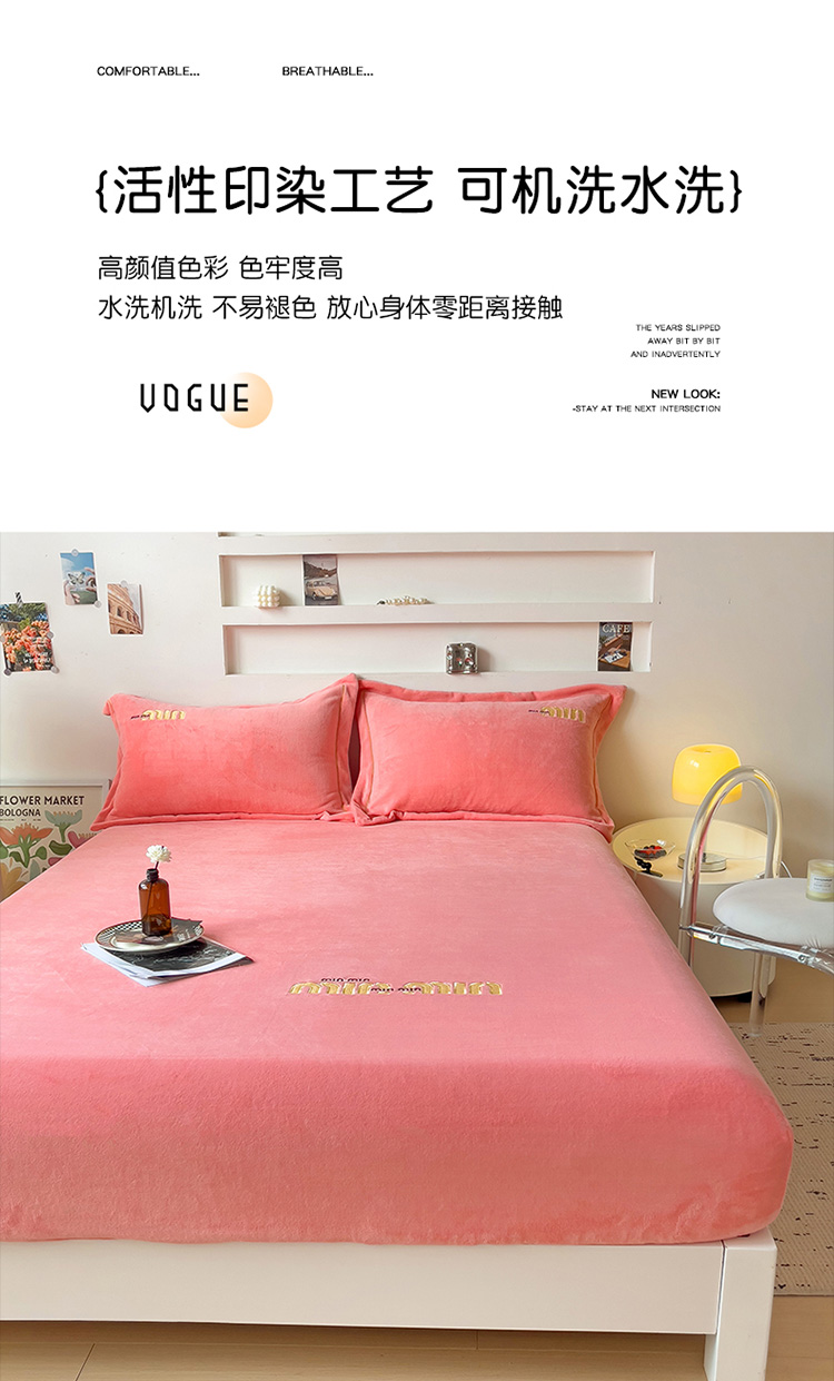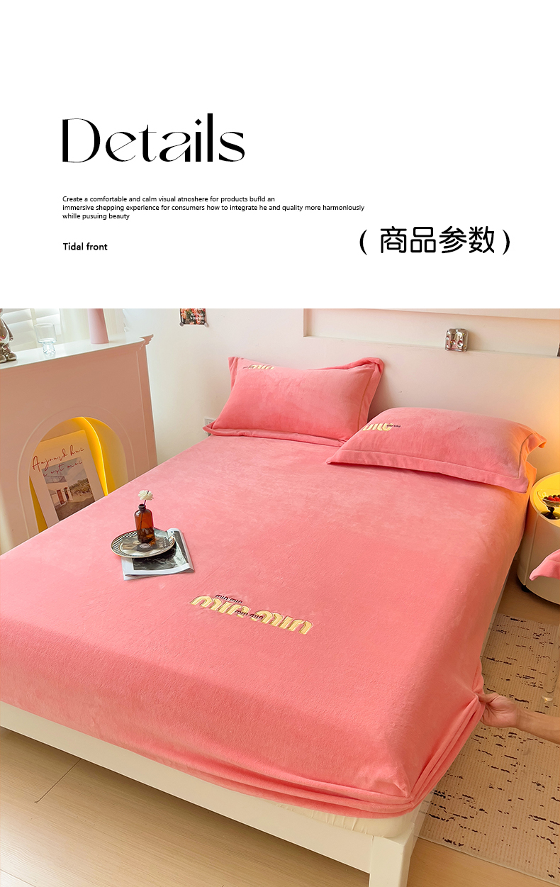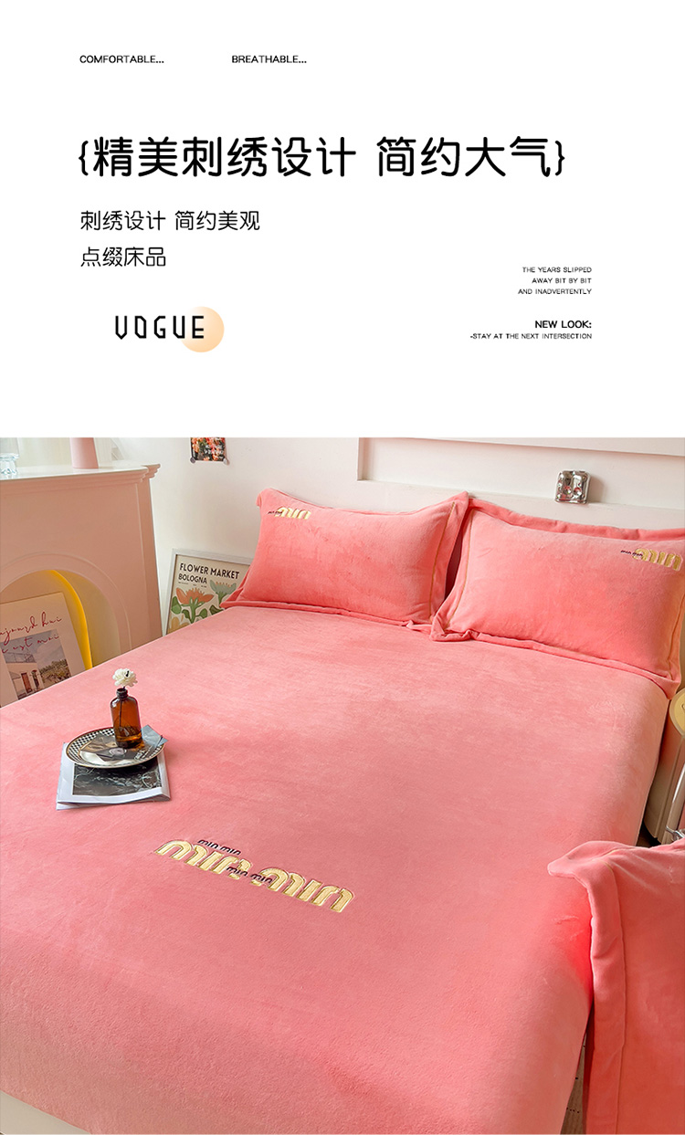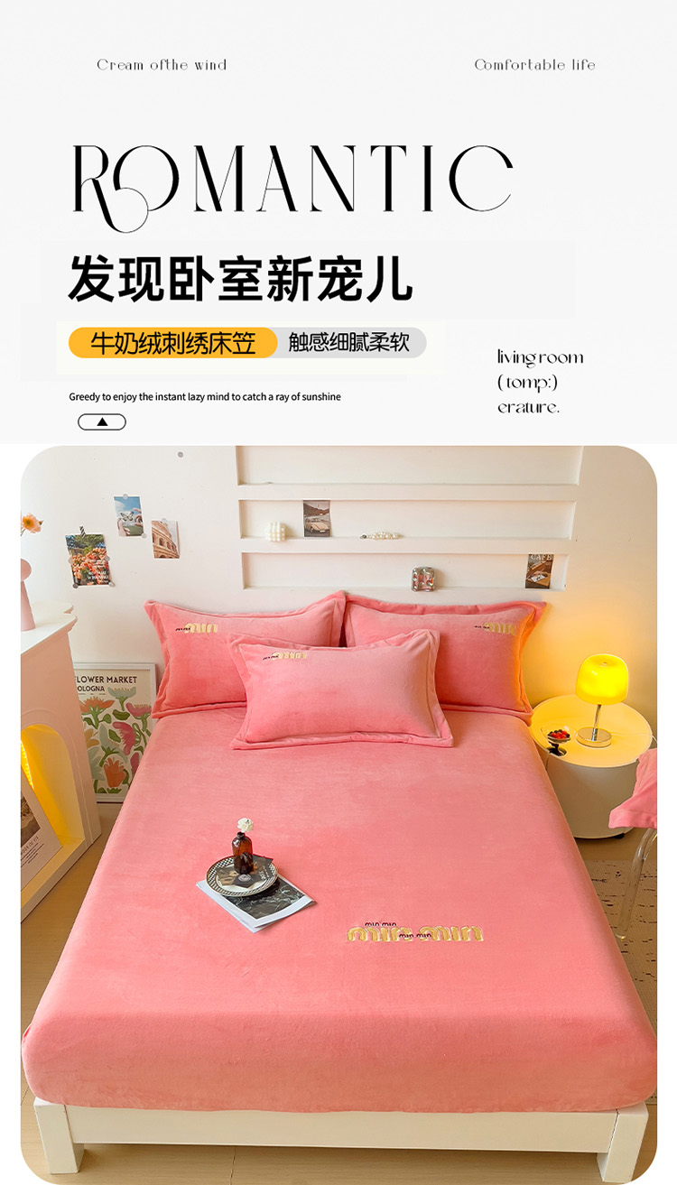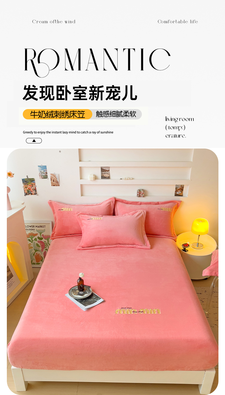 • 91家纺网 家纺一手货源 找家纺 言熙居 2024新款牛奶绒刺绣纯色360度全包床笠三件套 喵喵-玉