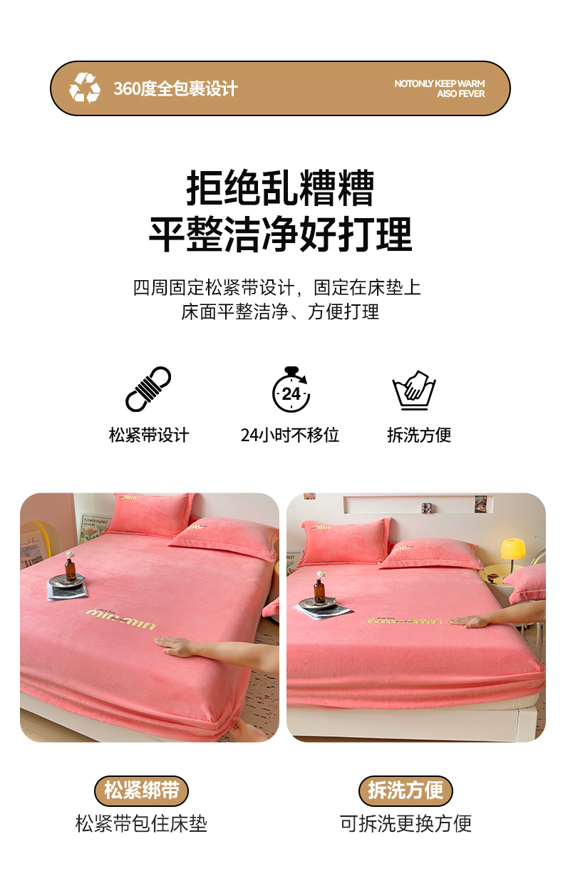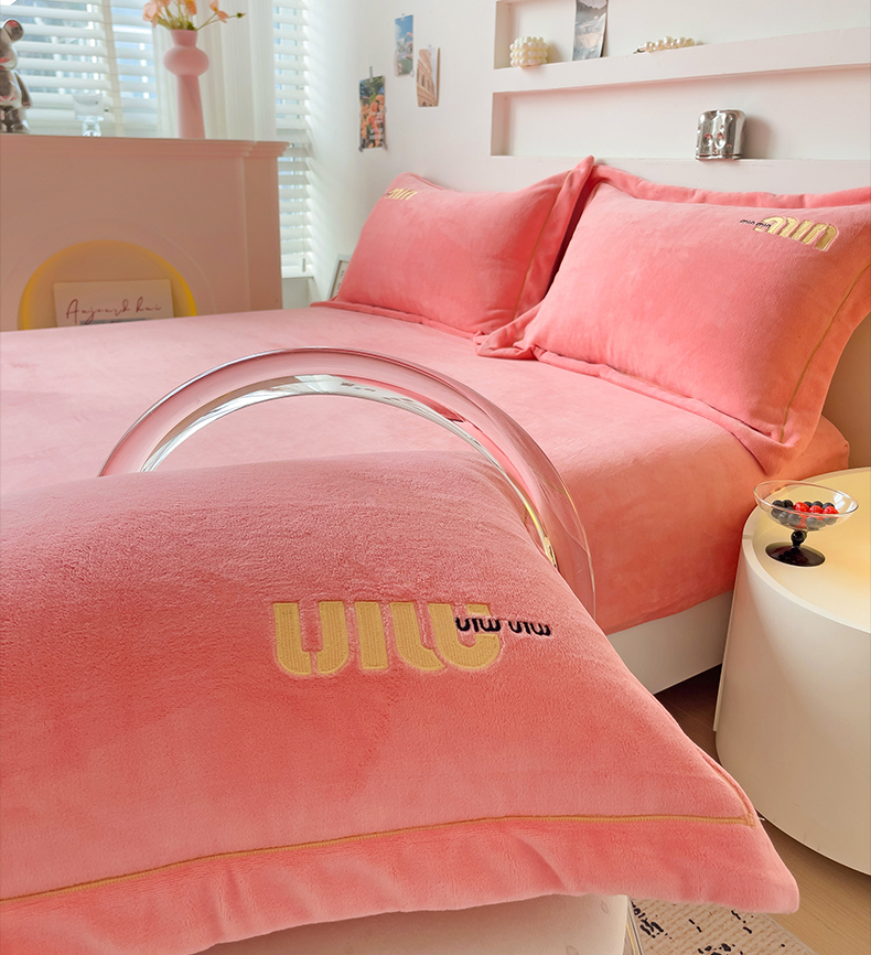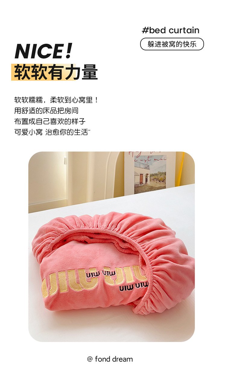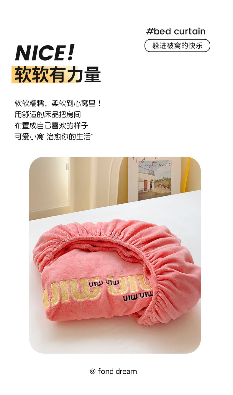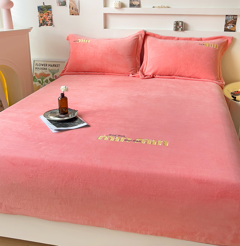 • 91家纺网 家纺一手货源 找家纺 言熙居 2024新款牛奶绒刺绣纯色360度全包床笠三件套 喵喵-玉