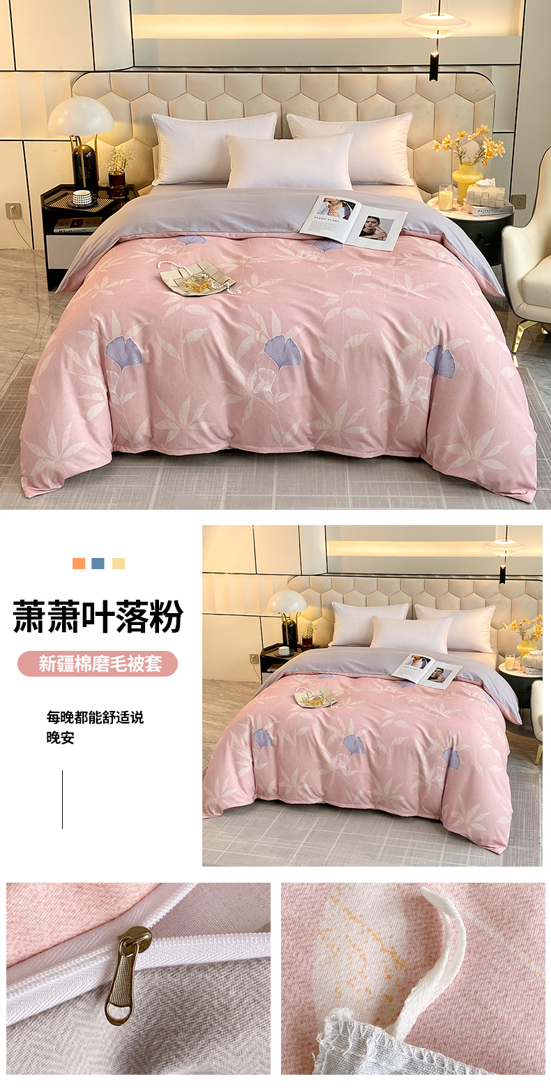 商品名称:梧桐树 2025新款加厚磨毛单被套 潇潇落叶粉