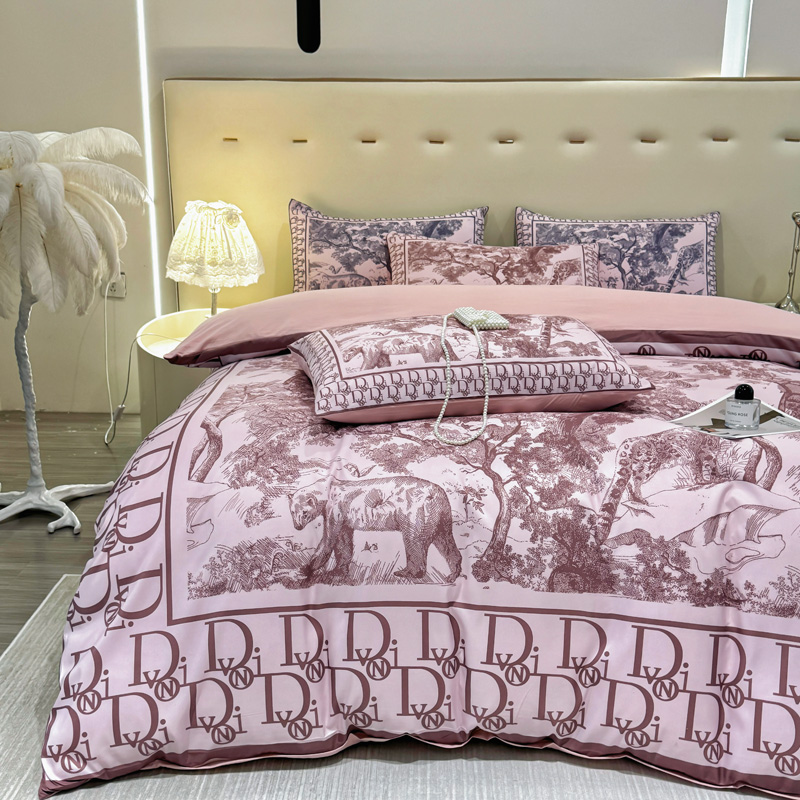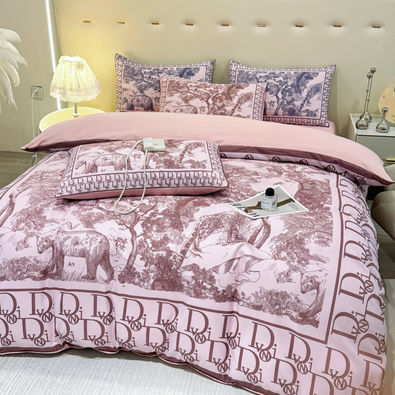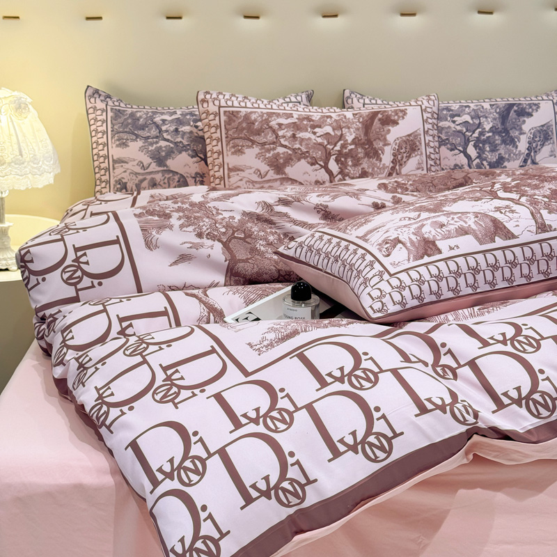色鬼 2024新款印花磨毛四件套仿大牌直播爆款网红四件套 粉迪