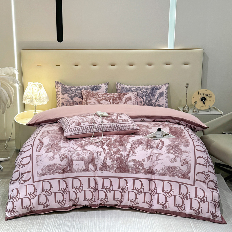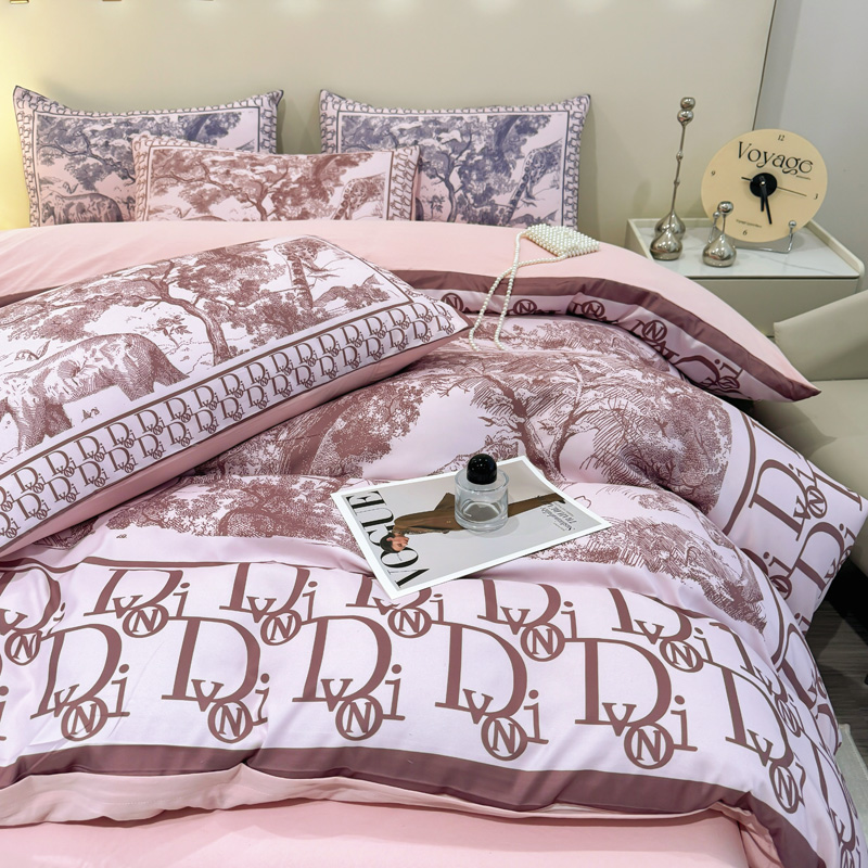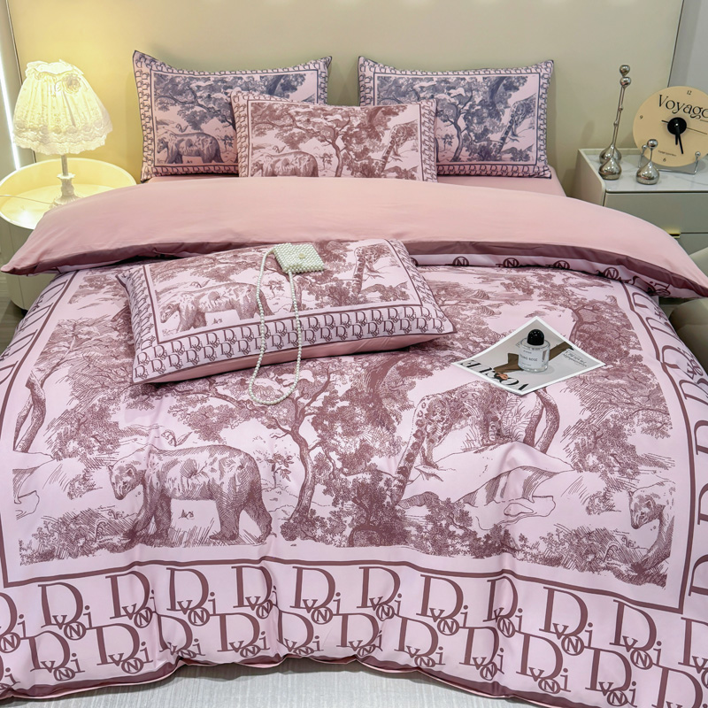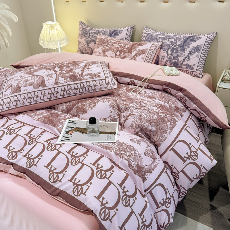 商品名称:色鬼 2024新款印花磨毛四件套仿大牌直播爆款网红四件套 粉迪