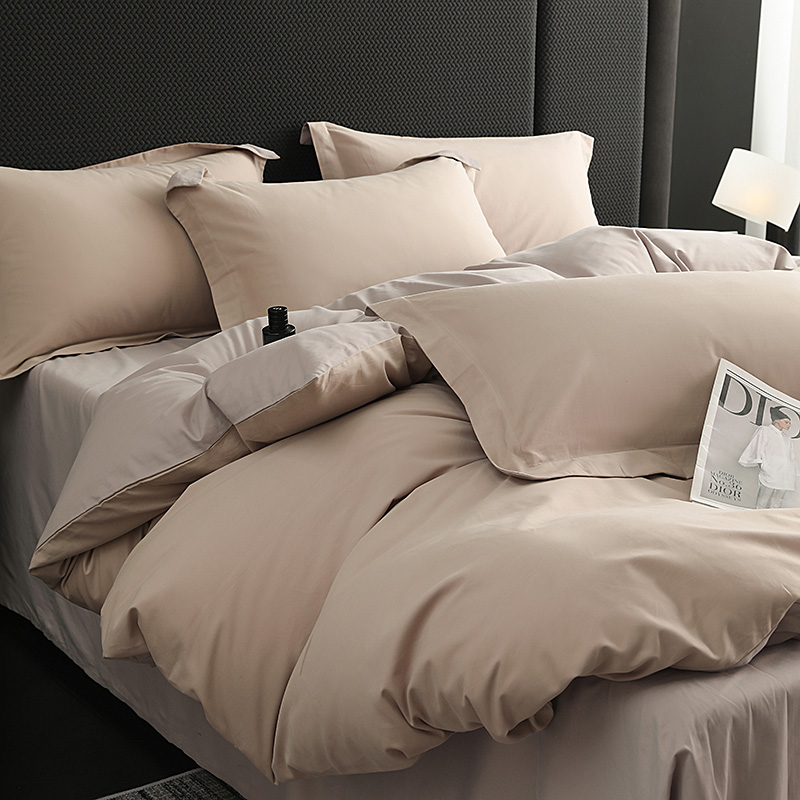 (总)莱阁亿 2025新款全棉60S素色双拼四件套,槐暖鹅黄,焦糖+栗色,玫瑰红茶,暮色烟雨,雅士灰+天空蓝,烟灰紫+香槟金,莺茶绿+香槟金,樱花白桃,陨石灰+拿铁