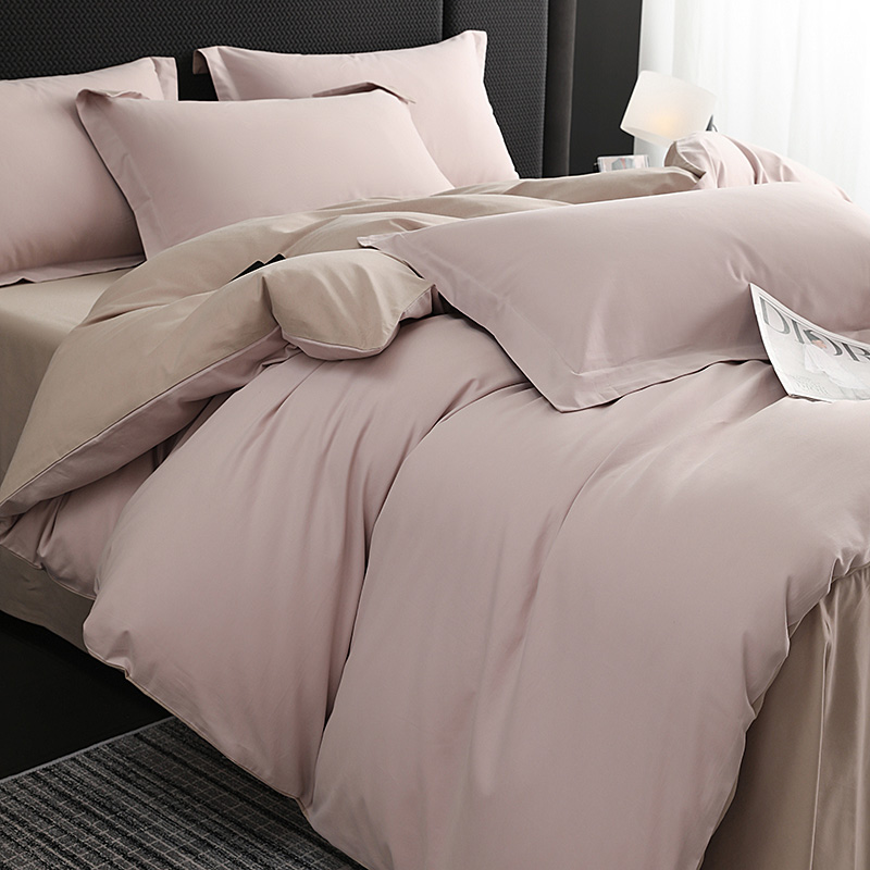 (总)莱阁亿 2025新款全棉60S素色双拼四件套,槐暖鹅黄,焦糖+栗色,玫瑰红茶,暮色烟雨,雅士灰+天空蓝,烟灰紫+香槟金,莺茶绿+香槟金,樱花白桃,陨石灰+拿铁