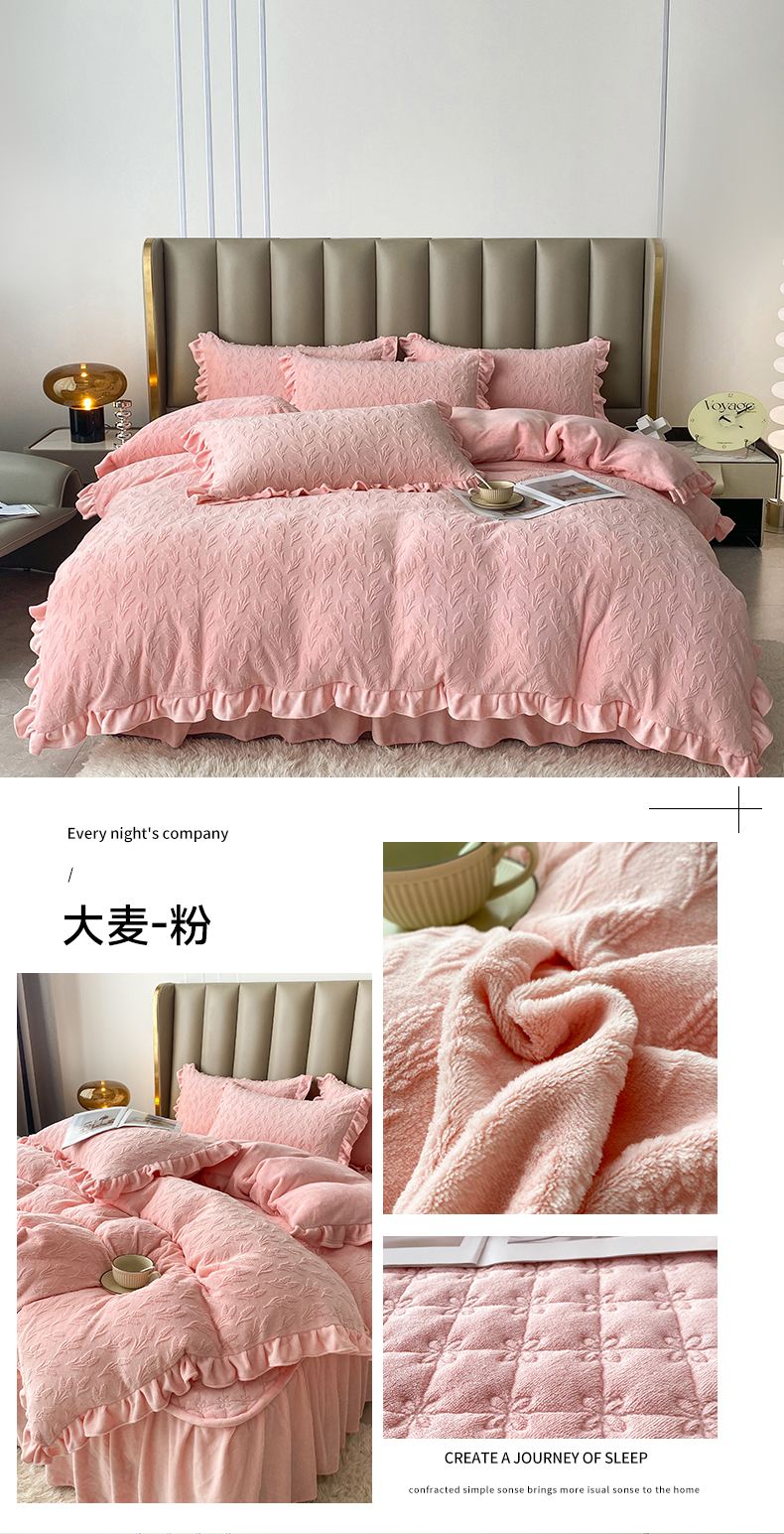 商品名称:美伦美焕 2024新款雕花绒床盖四件套(控价238) 大麦-粉