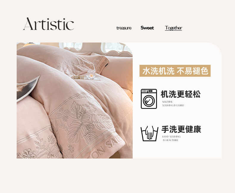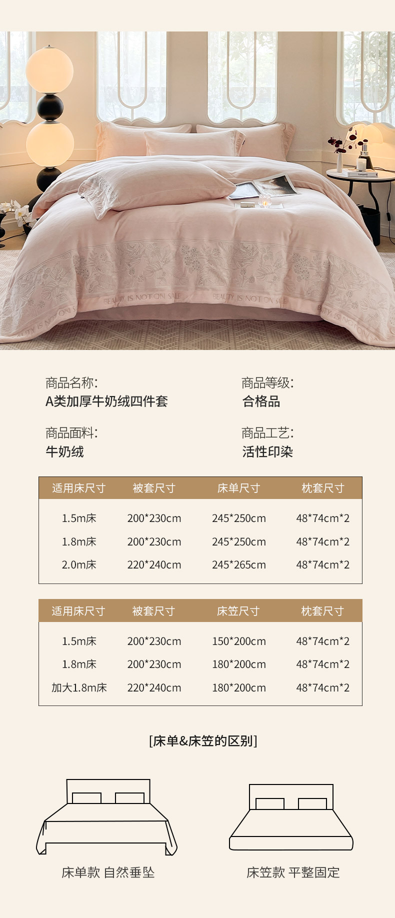 商品名称:(总)秋冬款9斤重高级感雕花牛奶绒四件套加厚珊瑚绒加绒被套床单床笠床上用品