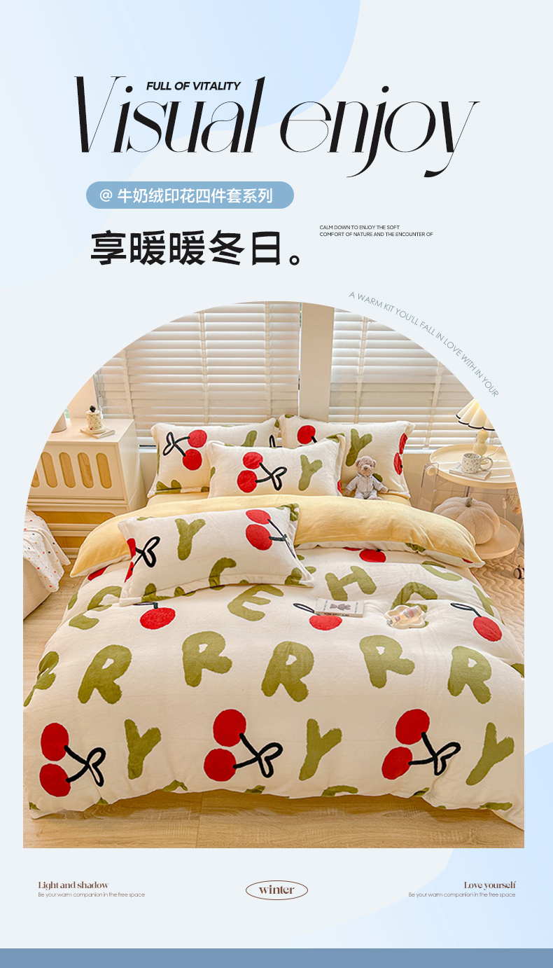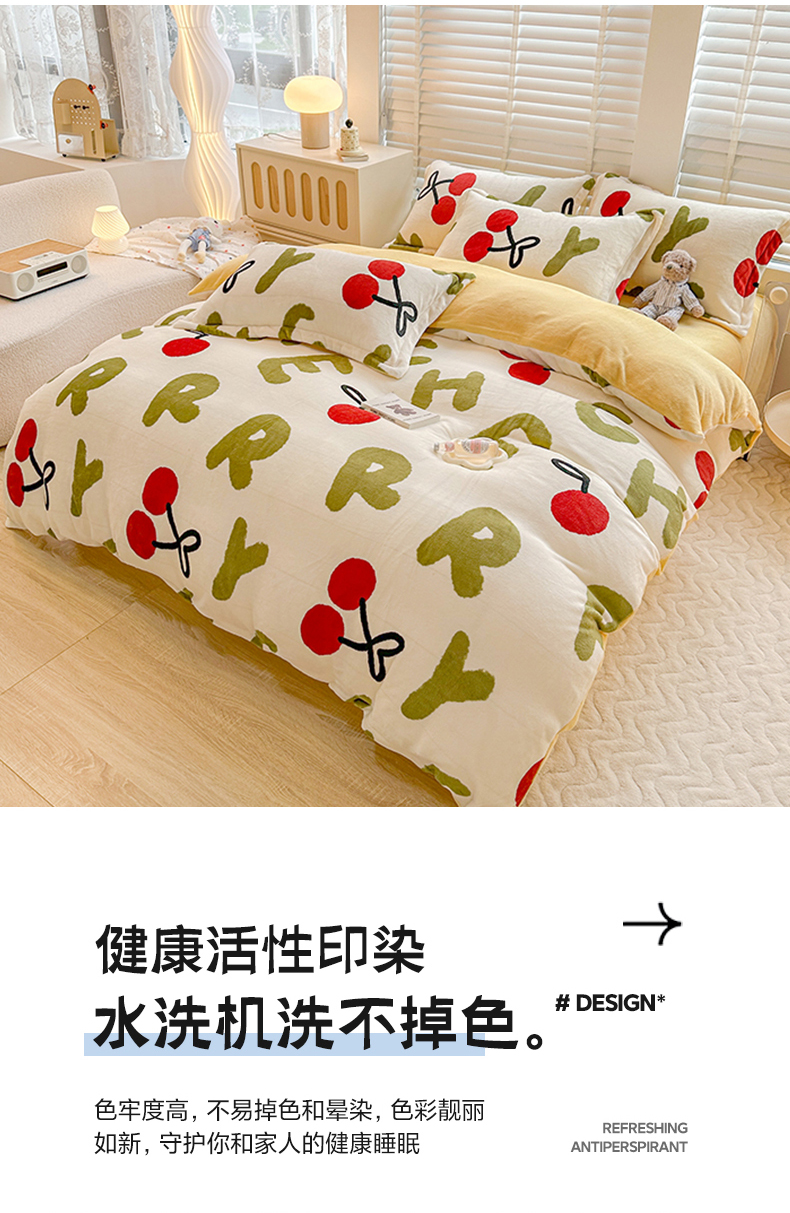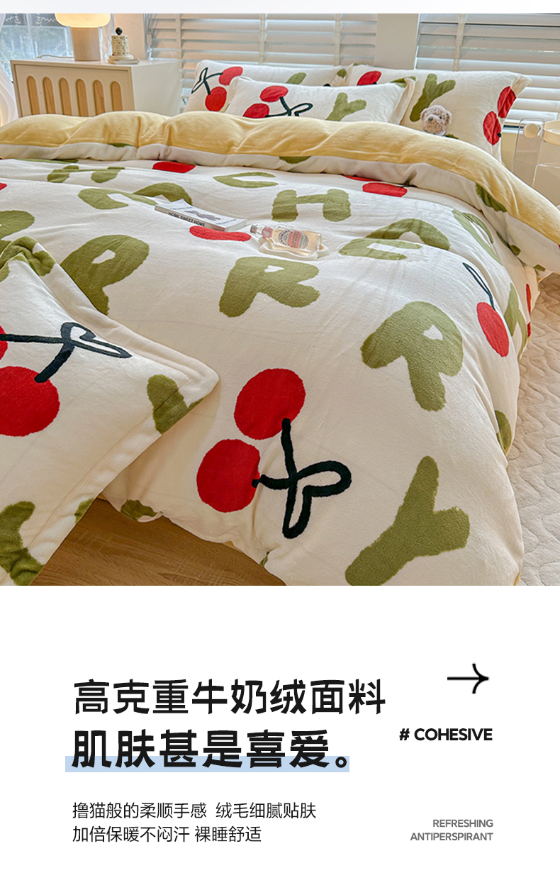卡普二店 2024新款牛奶绒印花四件套 芽蜜