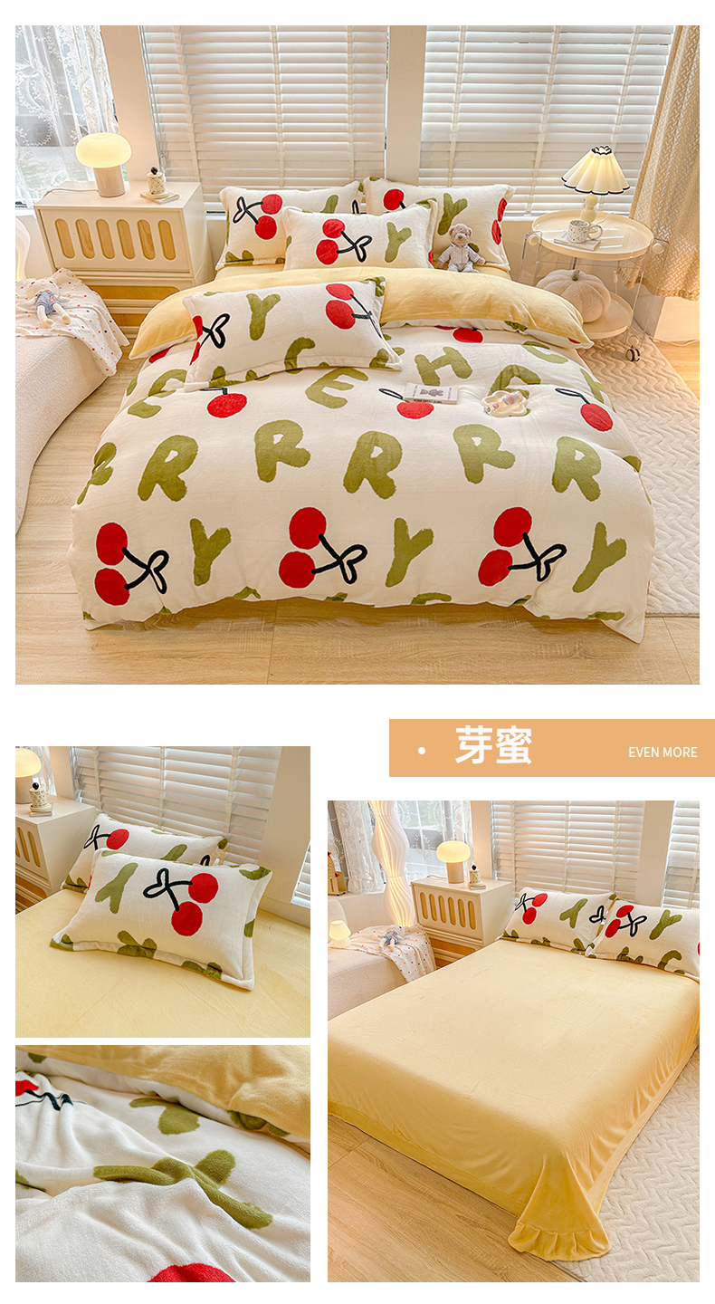 商品名称:卡普二店 2024新款牛奶绒印花四件套 芽蜜